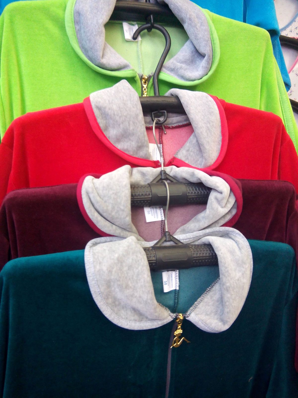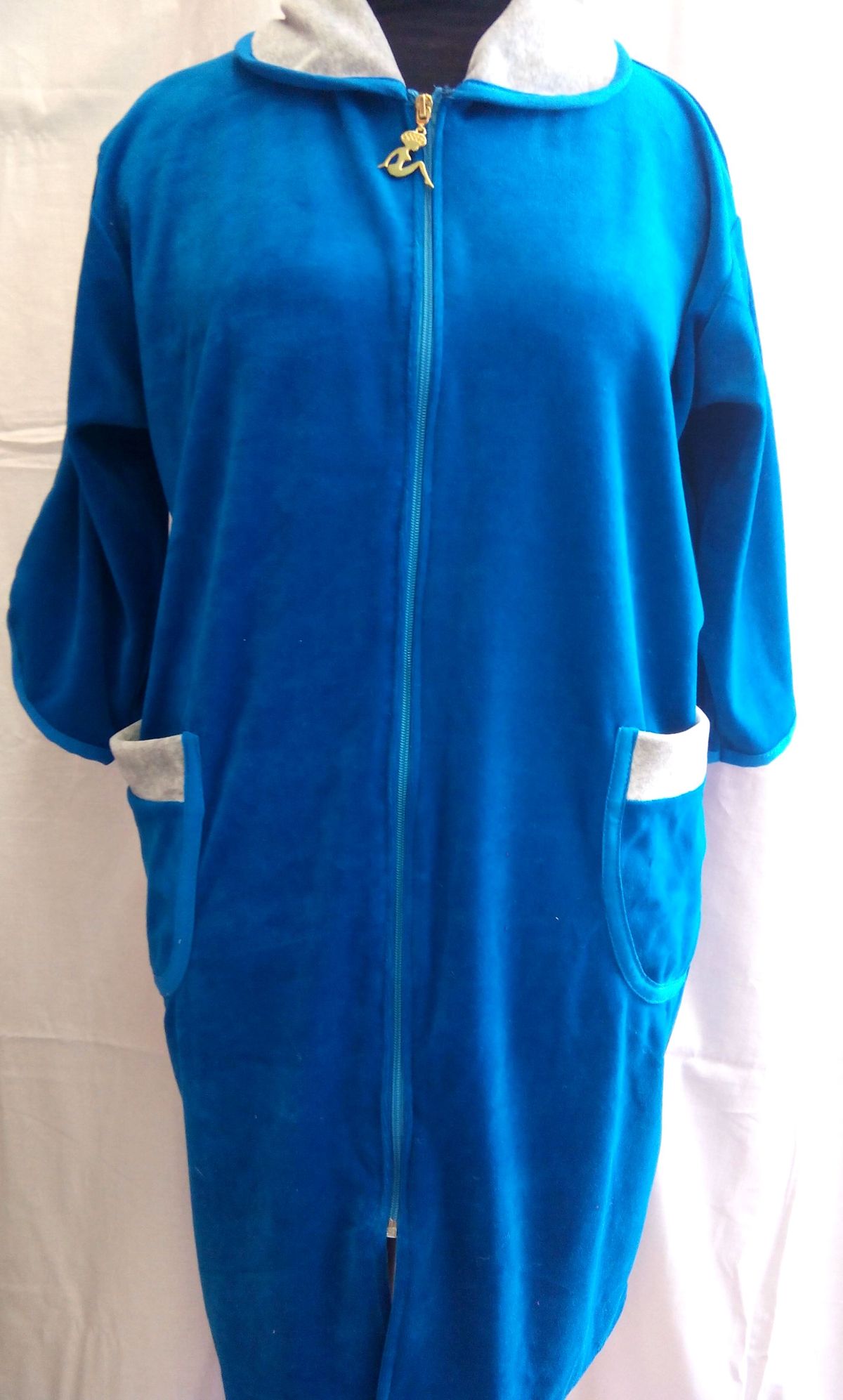 Велюровый халат /Батал/ с рукавом 3/4 с застежкой на "молнии". Яркий халат для женщин с размером от 48-го по 62-й. Цвета в ассортименте. Цена оптовая и розничная зависит от размера халата.