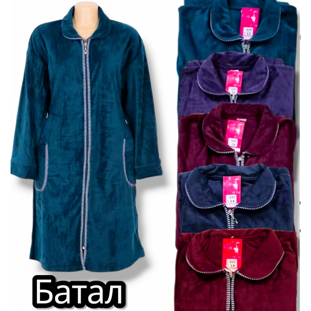 Халат жіночий велюровий, утеплений на байці. Фірми HATAI. Має довгий рукав, застібається на блискавку. Батал. Розміри: 10, 12, 14, 16, 18