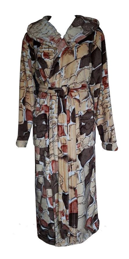 Халат изготовлен из ткани софт (махра полированная). Софт― это очень мягкий и нежный ворсистый материал, который в основном используется для пошива домашней одежды. Это довольно таки новая, но благодаря отменным свойствам уже успевшая полюбиться ткань. Халаты из такой ткани легкие, теплые, мягкие на ощупь, неприхотливы в уходе, и в то же время обладают высокой износостойкостью. Такой халат скорее надоест, чем придет в негодность. Теплый махровый халат ― это прекрасный подарок по случаю любого повода.