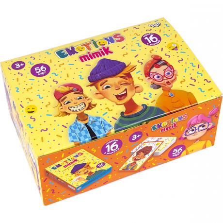 Карткова гра «Emotions Mimik» - це весела і пустотлива настільна гра. Гримасуй і вигравай! Мета гри: будуючи пики і запам'ятовуючи міміку інших гравців, зібрати найбільшу кількість карток. З цією грою не засумуєш! Оформлення укр. Комплект містить ігрові картки 56шт, правила гри. Розмір упаковки 13х 9х2,5 см. Вік 3+