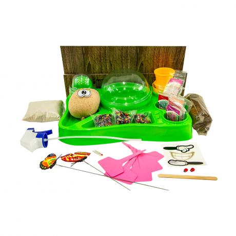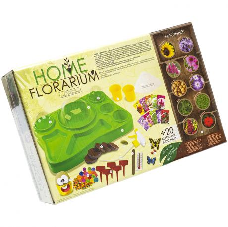 Безпечний освітній набір для вирощування рослин "HOME FLORARIUM" - ботанічний сад у Вас удома! У наборі: контейнер, купол прозорий 3шт, купол зелений 3шт, метелик декоративний 2шт, "букашка-сонечко" 2шт, кульки гідрогелеві 30г, пульверизатор, трав'яний монстрик, скляночка полімерна 2шт, торф'яні брикети 5шт, покажчики 5шт, пісок кварцевий 250г, дерев'яна паличка, градусник, "чарівні боби" 3шт, комплект насіння, картонний лабіринт, інструкція. Оформлення українською мовою. Вік 5+. Розмір упаковки 34*22,5*8см