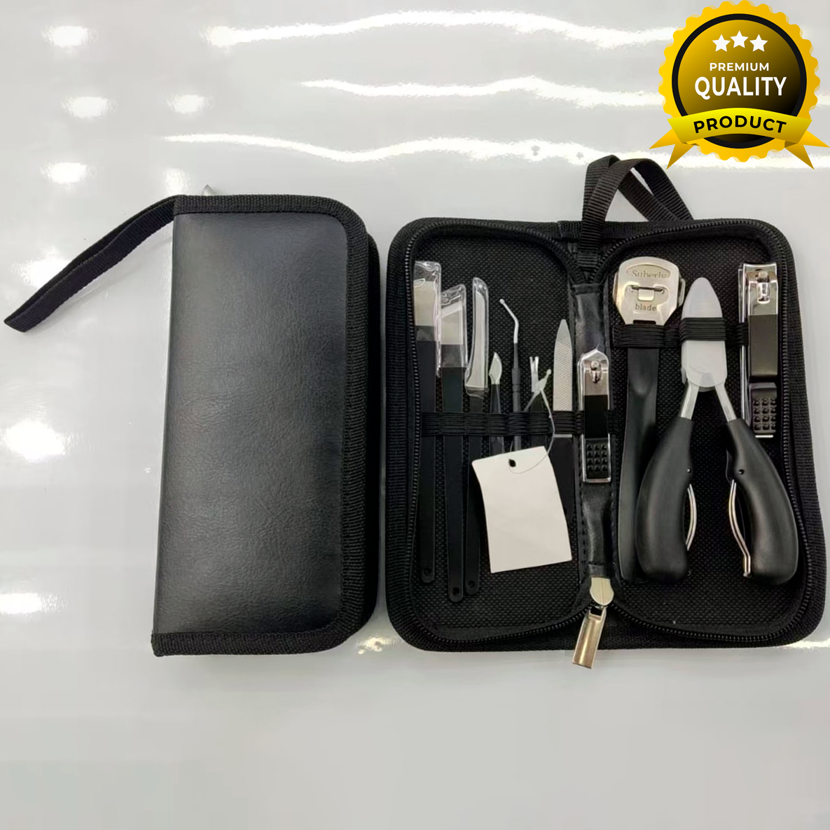 Премиальный маникюрный набор на 11 предметов – удобное решение для полноценного ухода за руками и ногами. В комплект входят кусачки, ножницы, пинцет, пилочка, пушеры, щипцы для педикюра и аксессуары для обработки кутикулы и ногтей.