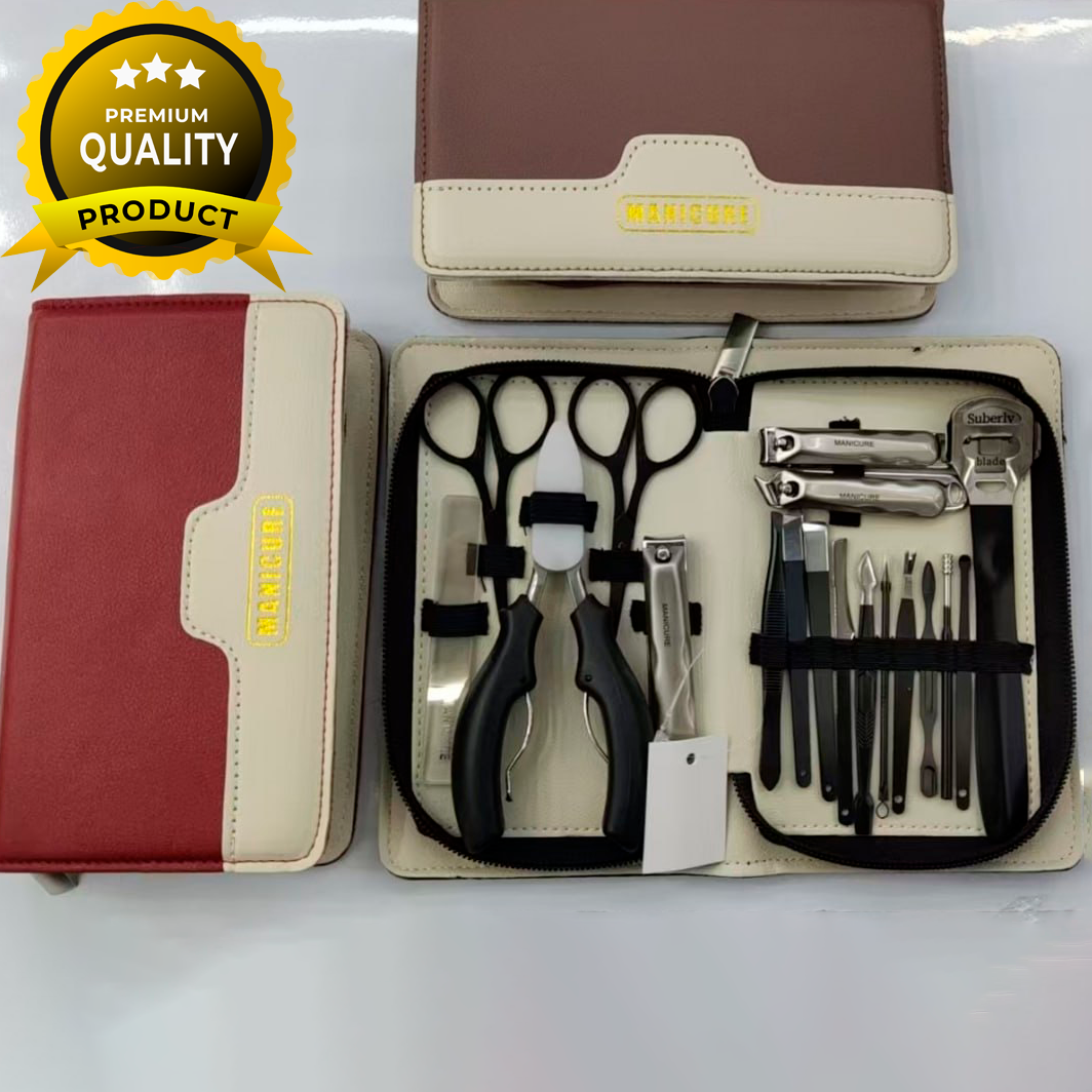 Премиальный маникюрный набор на 18 предметов – универсальное решение для комплексного ухода за руками и ногами. В комплект входят ножницы, кусачки, щипцы для педикюра, пилочка, пинцет, пушеры и аксессуары для обработки кутикулы и ногтей.