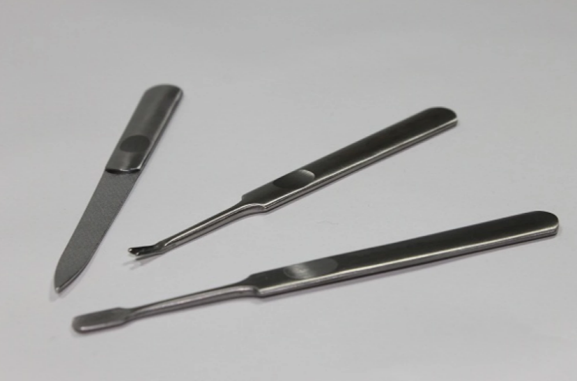 В наборе 3 предмета: - пилочка - обрезатель кутикул - лопатка Материал: сталь Размеры инструментов: длина 11.5см, ширина 0.7см