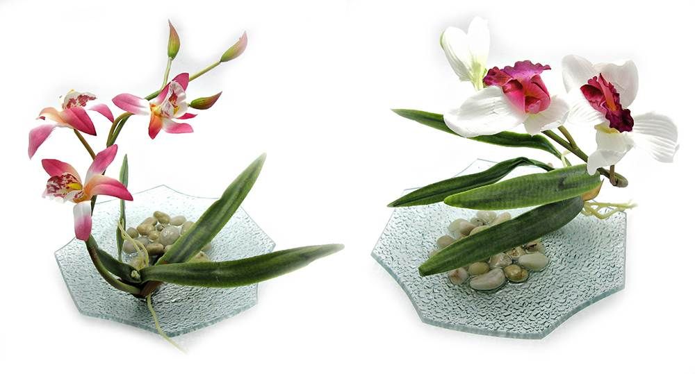Цветок орхидеи на стеклянной подставке (d-18.5 см) код 18792
