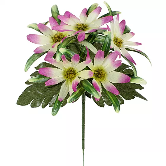 Небольшие бордюрные букеты бывают очень привлекательными, ярким тому примером служит этот небольшой букет астр. В этот букет входит 6 ярких астр, каждая из которых размером по 6 см, высота букета составляет 21 см. Астры выполнены из качественного шелка, в шести нежных цветах. В упаковке будет содержаться 60 букетов, которые нужно будет распарить после получения. Букеты легко распариваются и быстро принимают изначальную форму. Заказывайте прямо сейчас и убедитесь в качестве продукции.