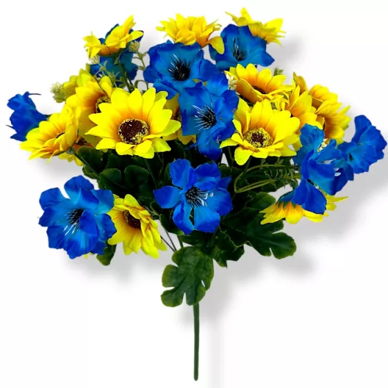 Искусственные цветы букет васильки и подсолнухи 27 голов серия Украина, 45см