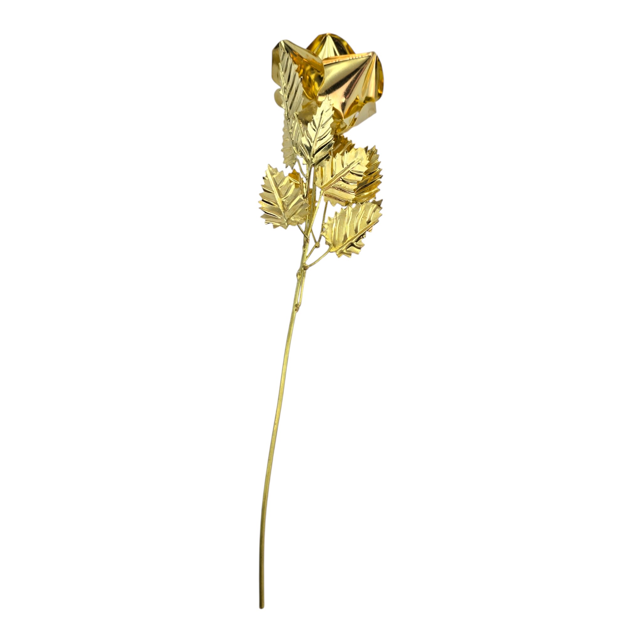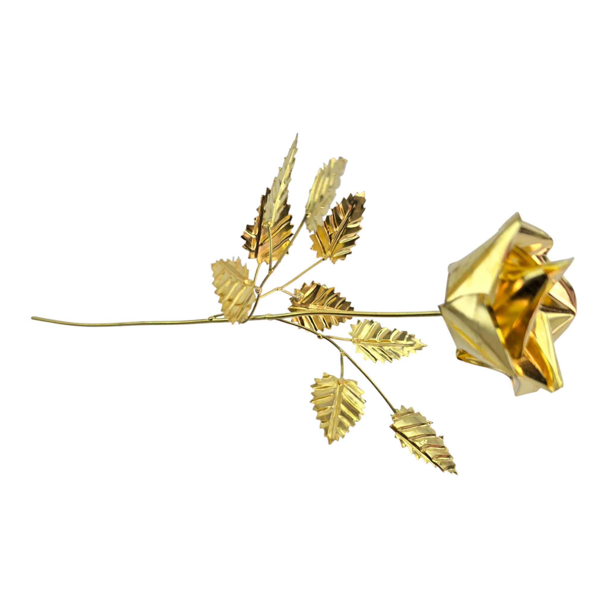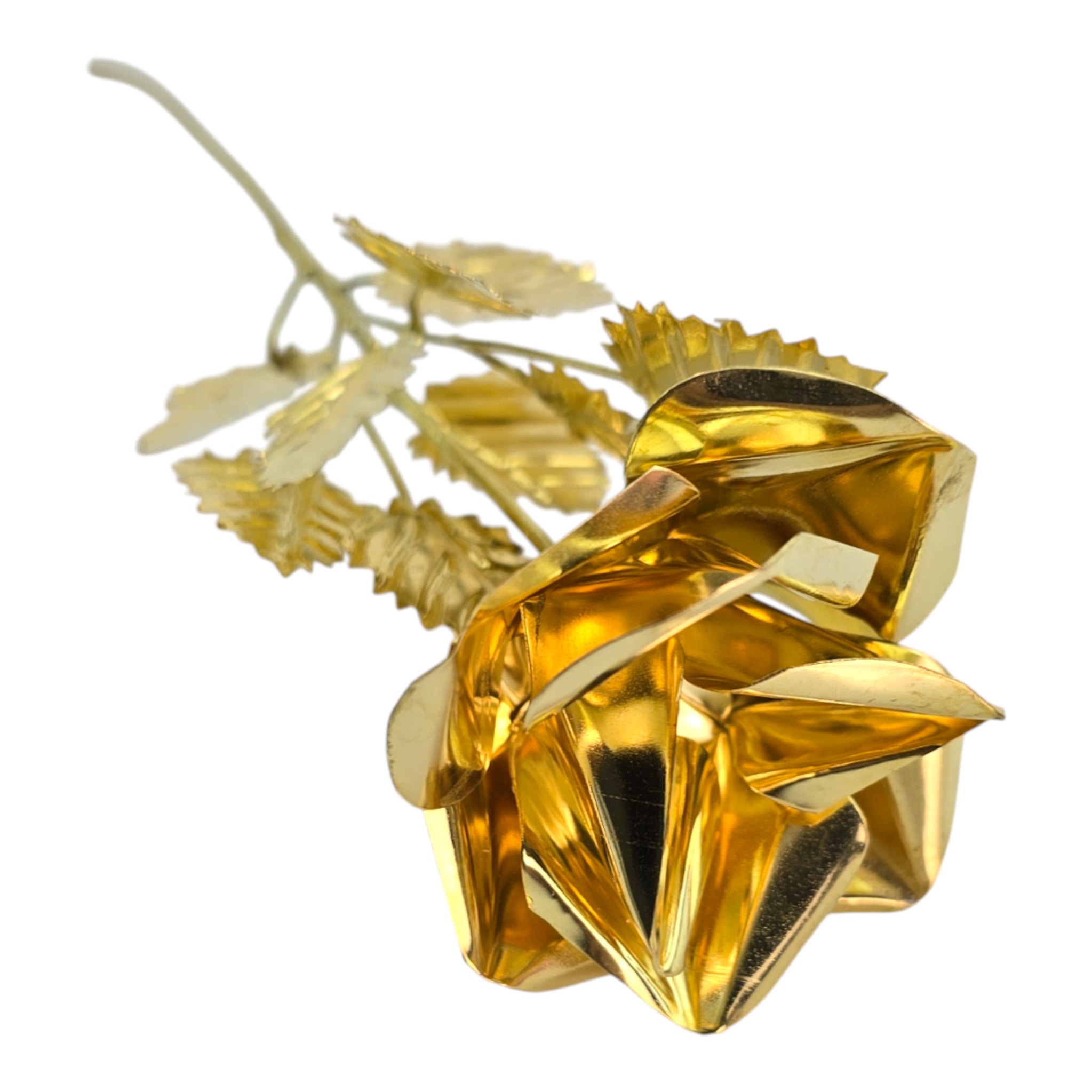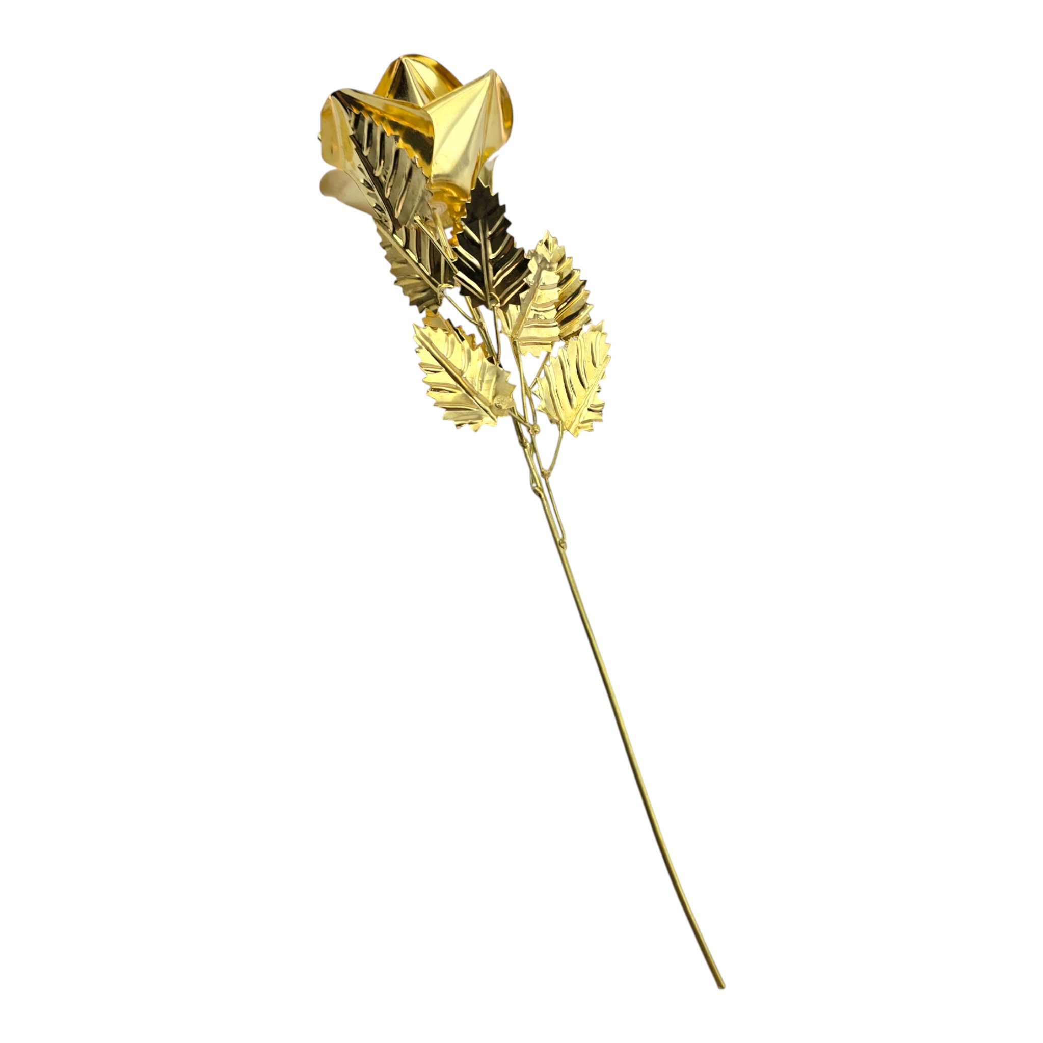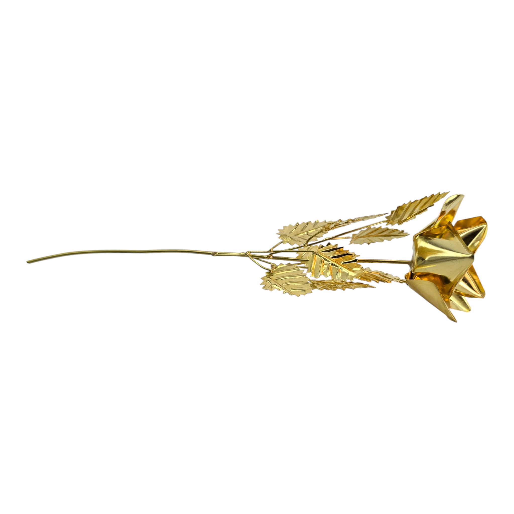 Декоративная роза из латуни - символичный подарок, который не завянет и надолго останется на память. Цветок выполнен в золотистом цвете, с объемным бутоном и листьями. Подходит как романтичный презент на День влюбленных, годовщину, день рождения, а также как сувенир для дома или рабочего стола.