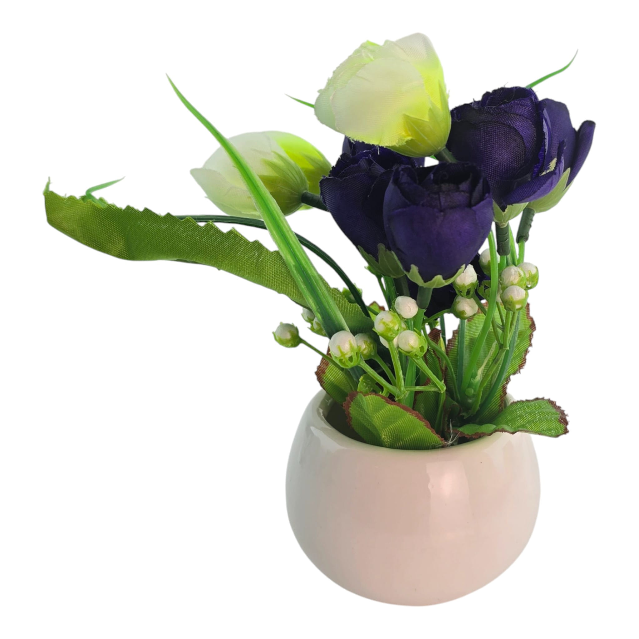 Материал: кашпо - керамика; цветы и зелень - текстиль, пластик