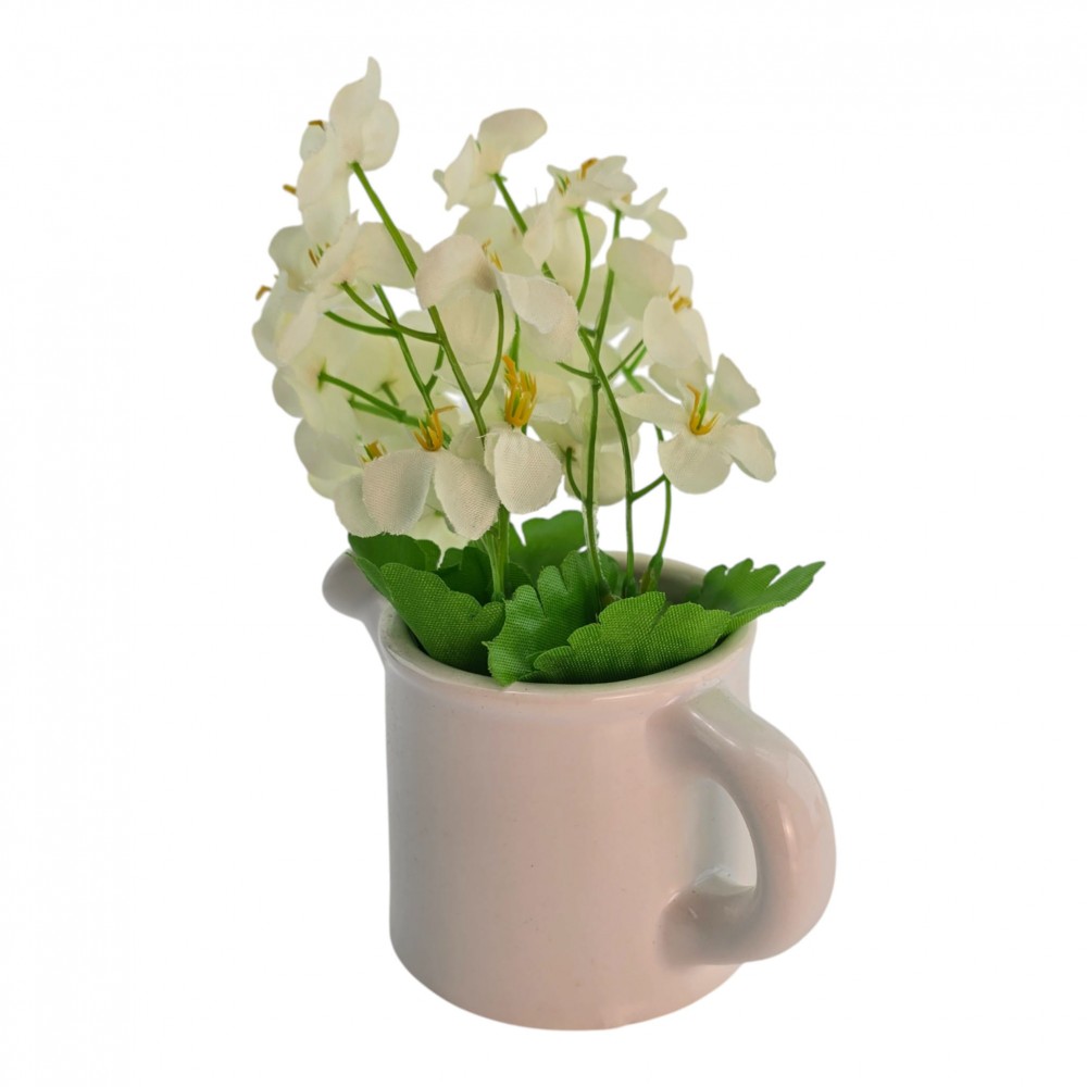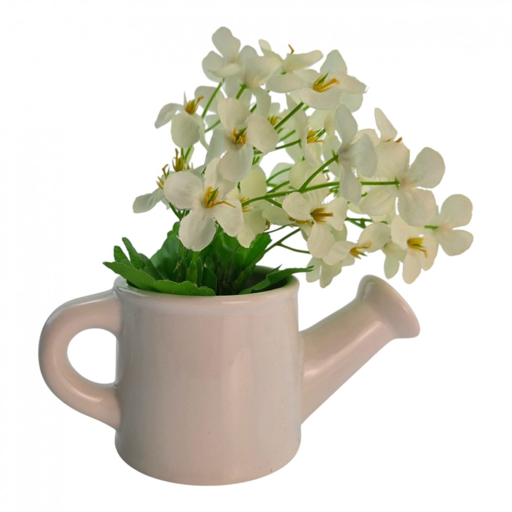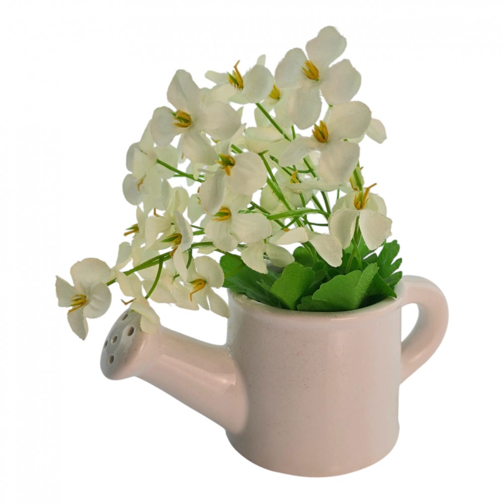 Декоративная композиция из искусственных цветов в керамической лейке для уюта на кухне, подоконнике или полке. Белые и кремовые лепестки с желтыми тычинками выглядят нежно и “свежо”, а зелень добавляет объема. Лейка с носиком-рассеивателем (отверстия) делает декор узнаваемым и по-домашнему теплым. Не требует полива, света и ухода - просто поставили и выглядит аккуратно каждый день.
