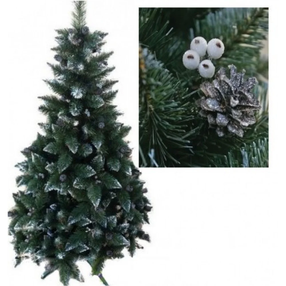 Елка искусственная Элитная с шишками и калиной с белым напылением изготовлена в соответствии с санитарно-эпидемиологическими и гигиеническими требованиями к продукции в Украине. Произведена из высококачественных материалов. Ствол представлен разборной трубкой, состоящей из трех частей, ветки состоят из проволочного каркаса, который отличается высокой гибкостью и прочностью. Иголки изготовлены согласно новым технологиям из ПВХ.