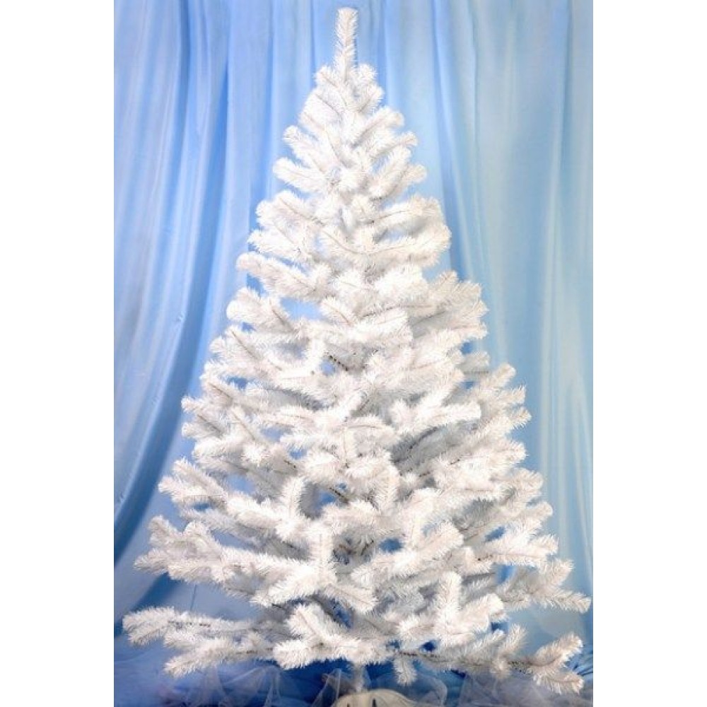 Ель искусственная высотой 1,8 м белого цвета изготовлена согласно санитарно-эпидемиологическим и гигиеническим требованиям к продукции в Украине. Ствол представлен цельнолитой трубкой, ветки - проволочным каркасом, материалом для иголок служит резаная пленка ПВХ, а подставка произведена из высокопрочного пластика.