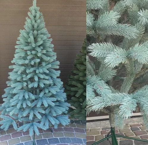 Ель искусственная литая высотой 2,5 м голубого цвета изготовлена в соответствии с санитарно-эпидемиологическими и гигиеническими требованиями к продукции в Украине. Произведена из высококачественных материалов. Ствол представлен разборной трубкой, состоящей из двух частей, ветки состоят из проволочного каркаса, который отличается высокой гибкостью и прочностью. Иголки изготовлены согласно новым технологиям из пластика, используемого в медицине и пищевой промышленности, обладающего гипоаллергенностью, экологической чистотой, отсутствием канцерогенного воздействия на здоровье человека. Иголки характеризуются обтекаемой формой, мягкостью, гибкостью, что обусловлено способом производства искусственной хвои путем индивидуального отливания в специальной матрице. В комплект входит кованая устойчивая подставка, позволяющая устанавливать ель на любую поверхность.