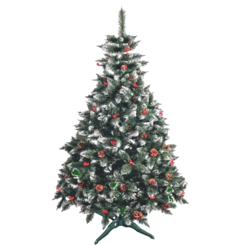 Ель искусственная комбинированная имеет заснеженную крону из ПВХ пленки со вставками литой хвои. Декорирована шишками и калиной разного цвета. Ствол представлен разборной трубкой, ветки состоят из проволочного каркаса, который отличается высокой гибкостью и прочностью. Сходство комбинированной ели с натуральной елкой достигается благодаря декорированию еловыми шишками, а также увеличению ярусности веток, их набитости и наполненности, насыщенности цветом. Устойчивая подставка позволяет установить ель на любую поверхность. Данная модель может стать главным украшением в офисном, административном, торговом или развлекательном помещении, в детских садах и школах, а также в доме и квартире.