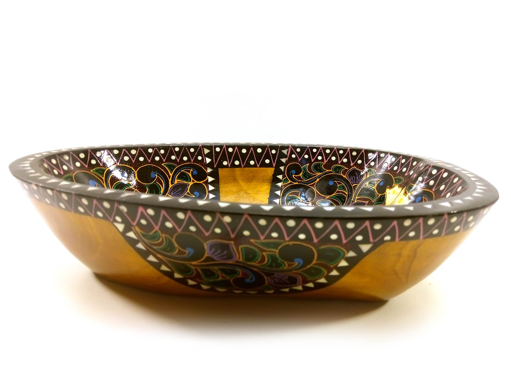 Братина из цельного дерева инкрустированная перламутром (25х17.7х6 см) код 30644