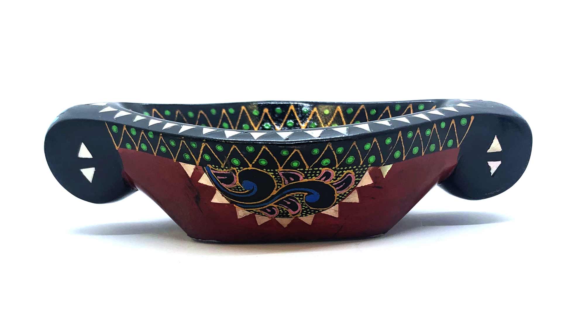 Братина Ладья из цельного дерева инкрустированная перламутром (16,5х10х3,5 см)D