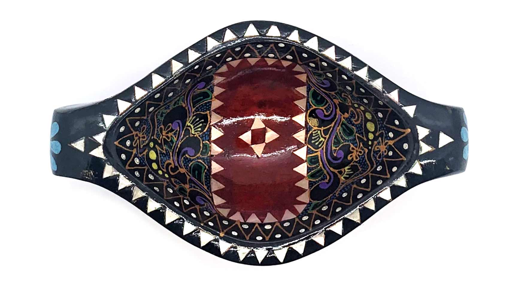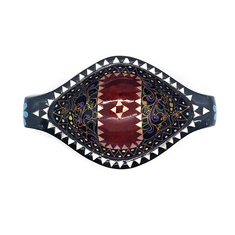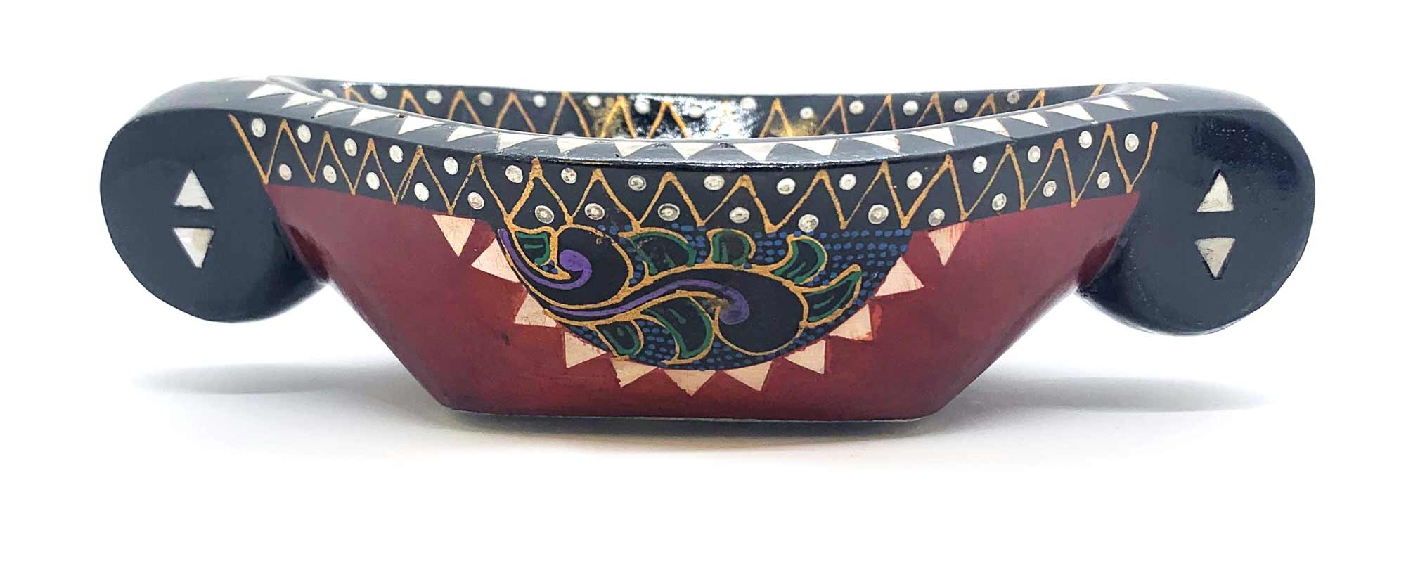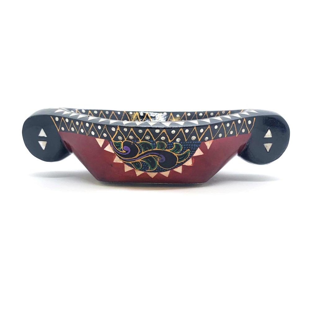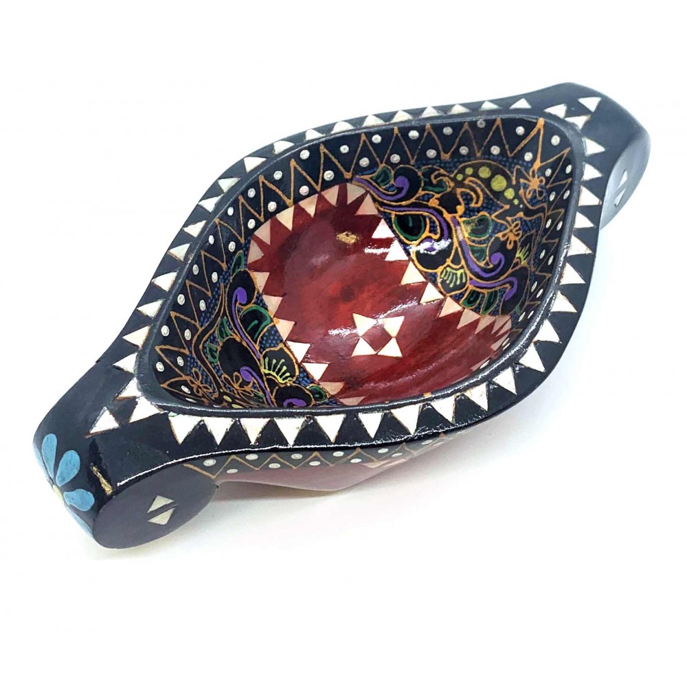 Это блюдо изготовлено из высококачественного цельного дерева и украшено великолепной инкрустацией из перламутра. Красный цвет придает ему особую элегантность и притягательность. На поверхности блюда вручную нанесена нежная и яркая роспись с изображением прекрасных цветов. Каждый штрих и деталь выполнены с большим вниманием к деталям, чтобы создать великолепный визуальный эффект.