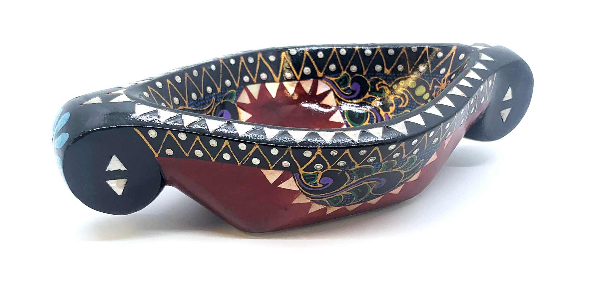 Братина Ладья из цельного дерева инкрустированная перламутром (16,5х10х3,5 см)G