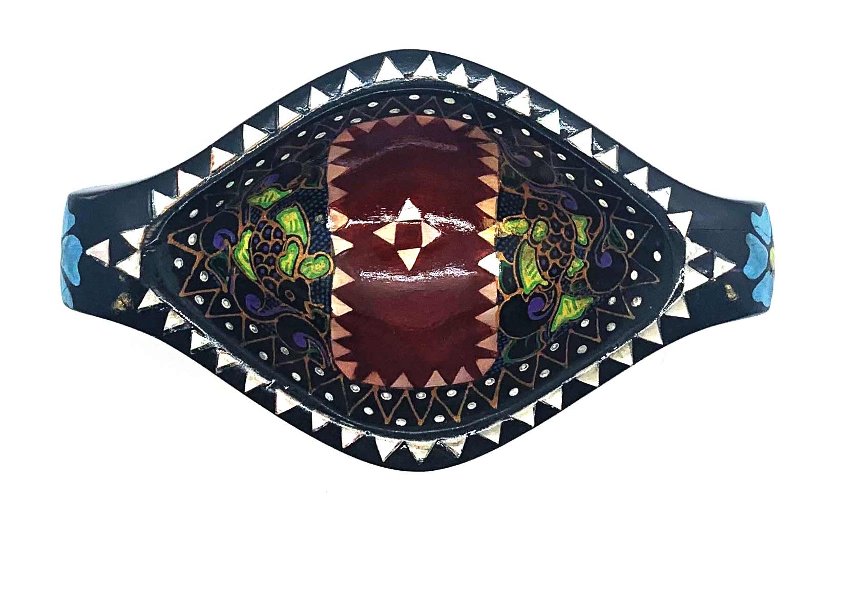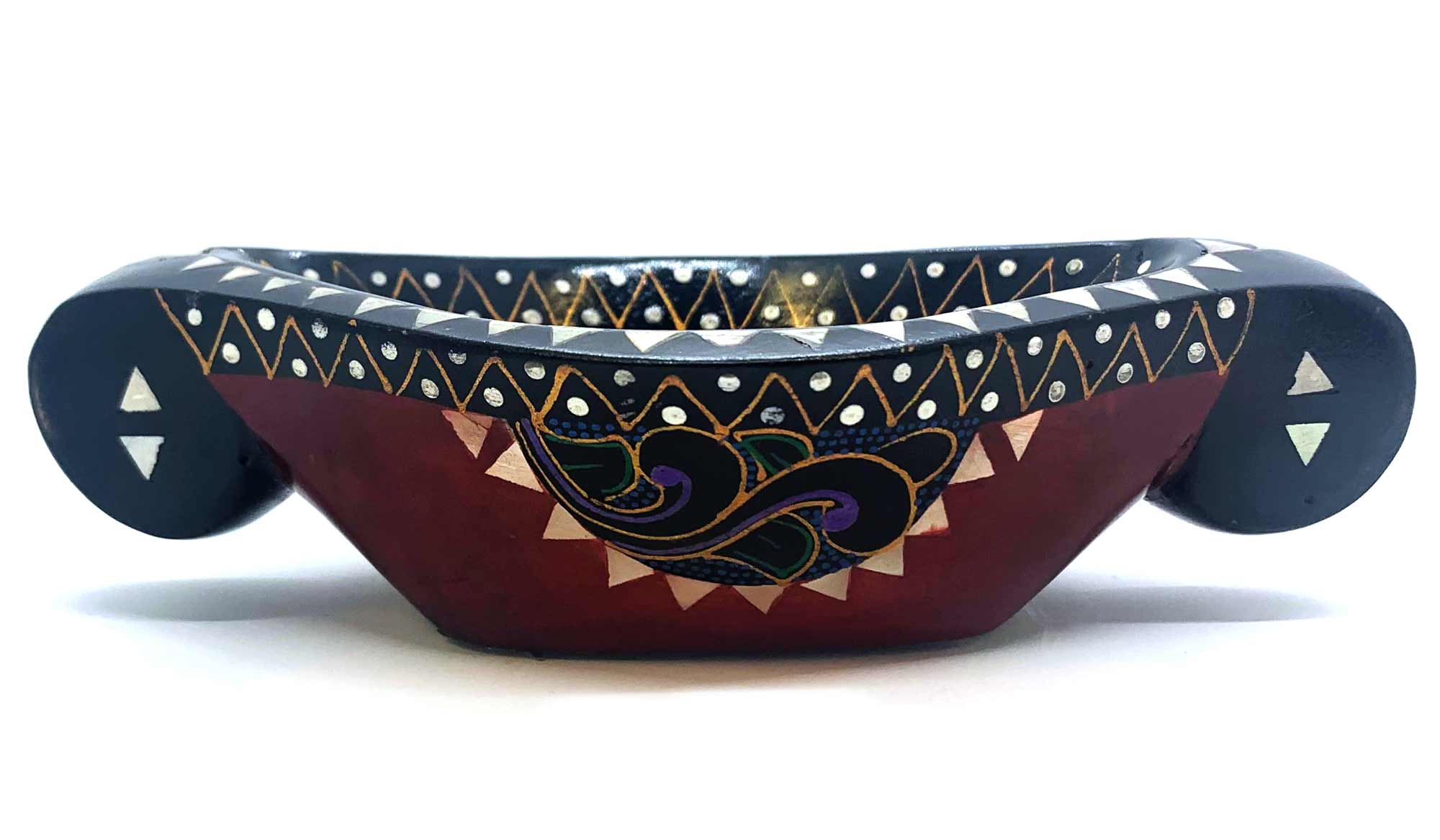 Это блюдо изготовлено из высококачественного цельного дерева и украшено великолепной инкрустацией из перламутра. Красный цвет придает ему особую элегантность и притягательность. На поверхности блюда вручную нанесена нежная и яркая роспись с изображением прекрасных цветов. Каждый штрих и деталь выполнены с большим вниманием к деталям, чтобы создать великолепный визуальный эффект.