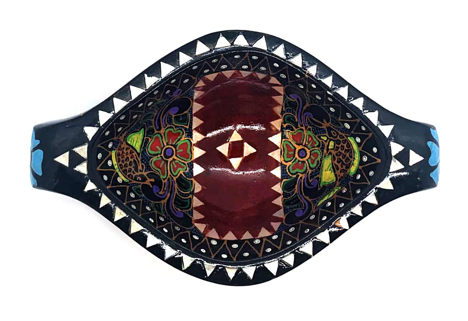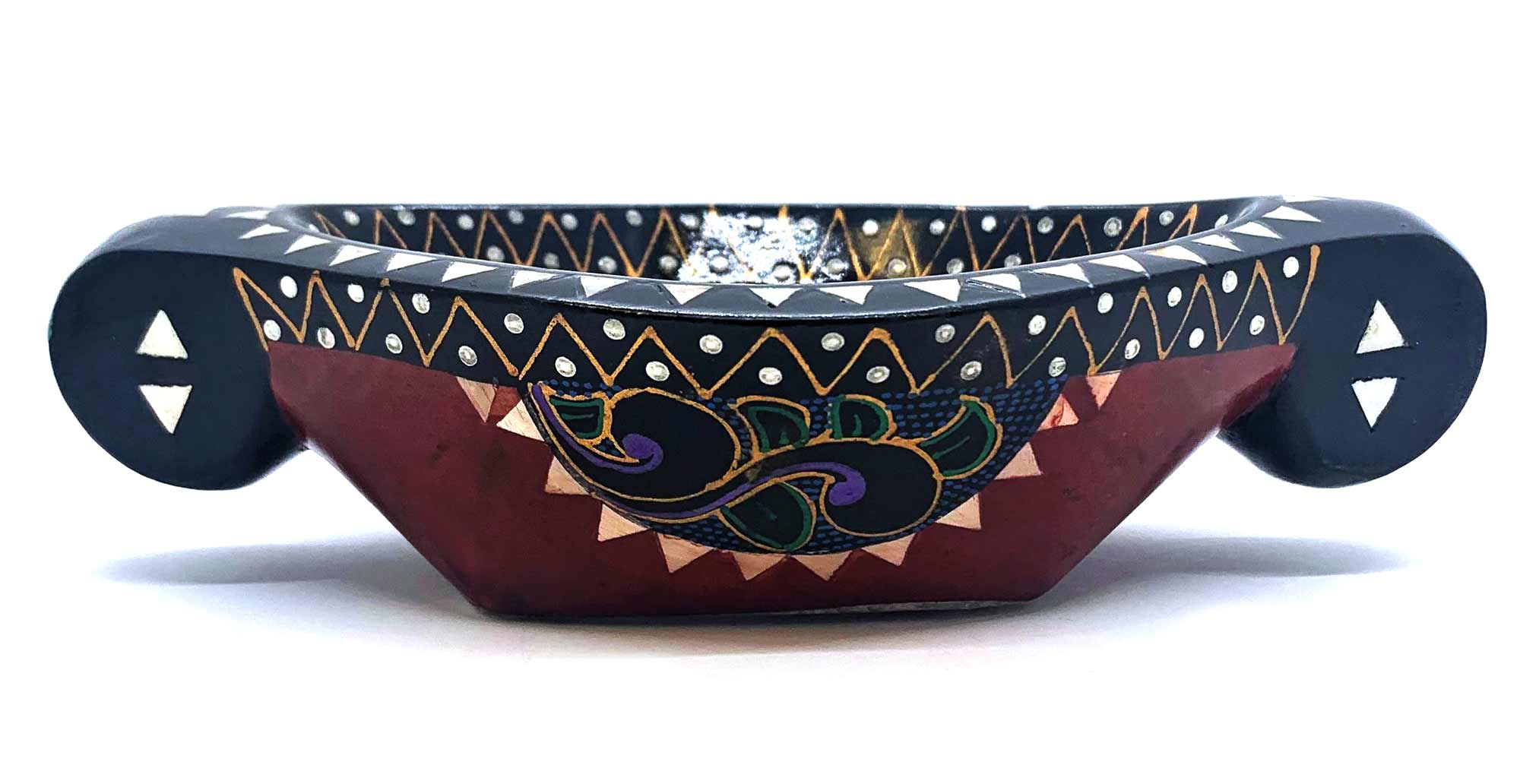 Это блюдо изготовлено из высококачественного цельного дерева и украшено великолепной инкрустацией из перламутра. Красный цвет придает ему особую элегантность и притягательность. На поверхности блюда вручную нанесена нежная и яркая роспись с изображением прекрасных цветов. Каждый штрих и деталь выполнены с большим вниманием к деталям, чтобы создать великолепный визуальный эффект.