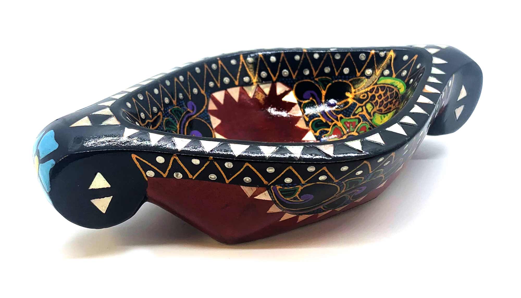 Братина Ладья из цельного дерева инкрустированная перламутром (16,5х10х3,5 см)L