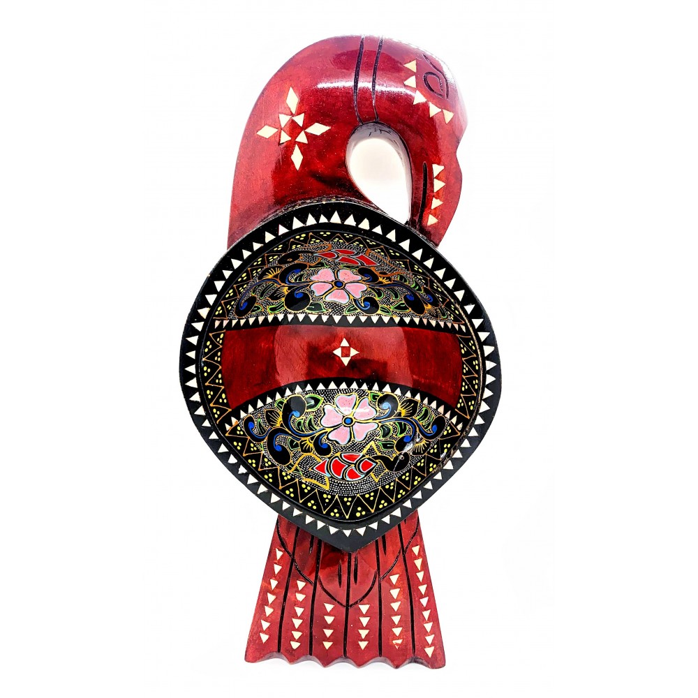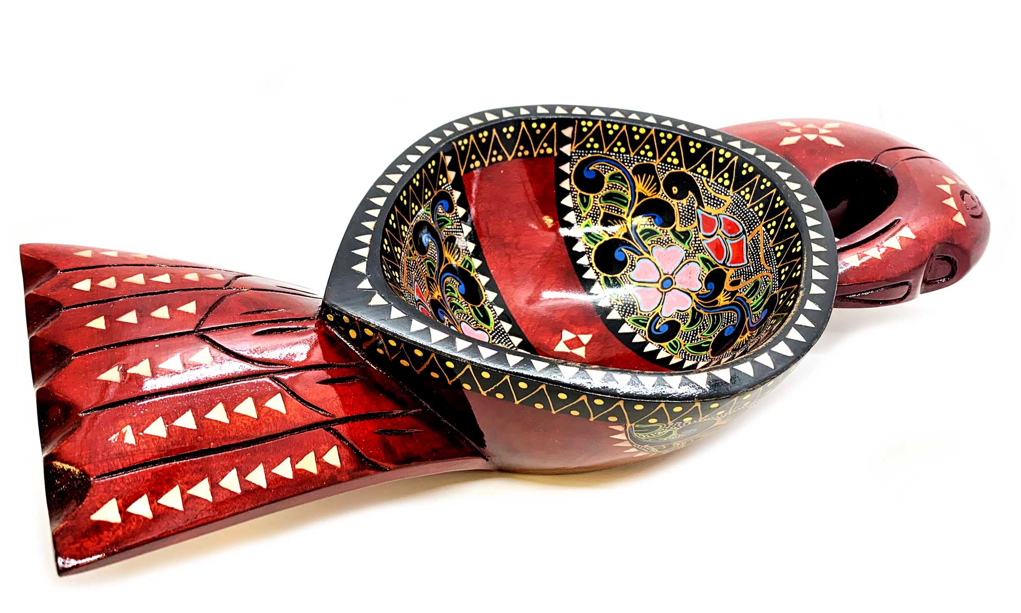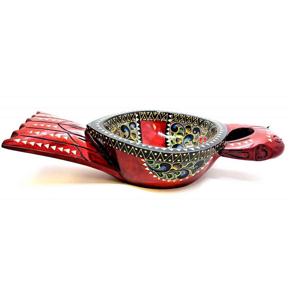 Братина Птица из цельного дерева инкрустированная перламутром (34х16,5х6 см)A