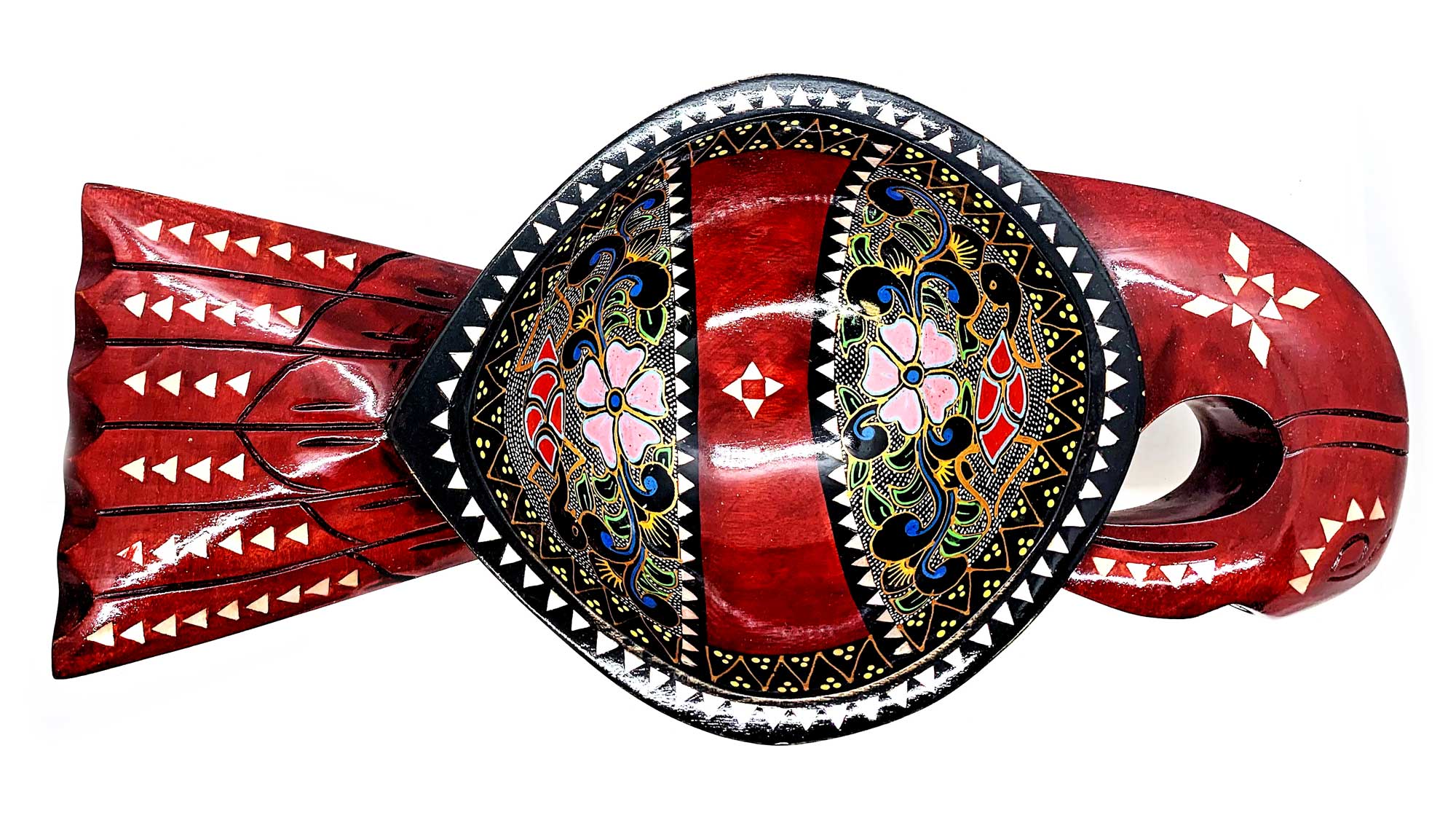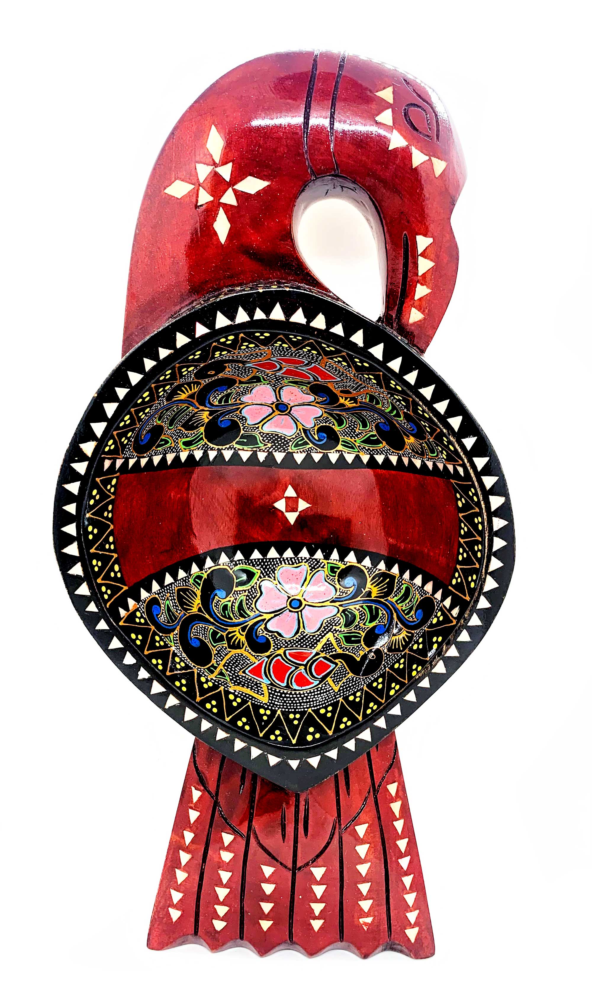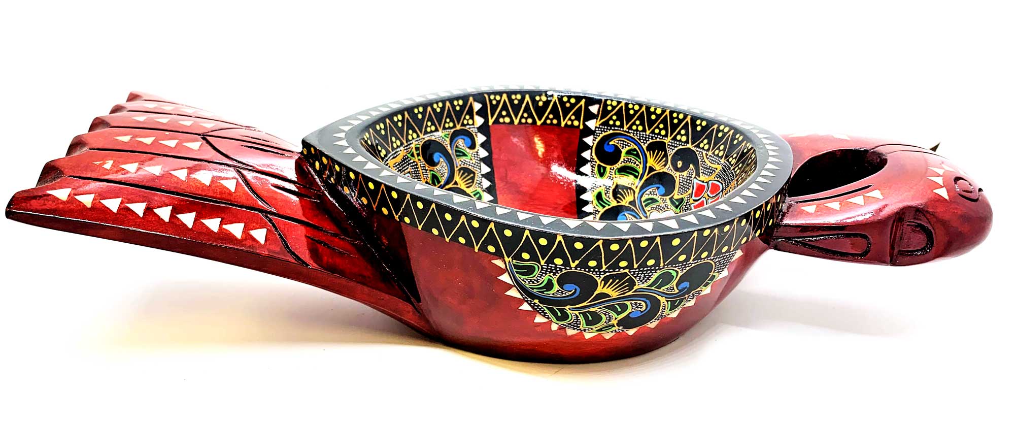Братина Птица из цельного дерева инкрустированная перламутром (34х16,5х6 см)A