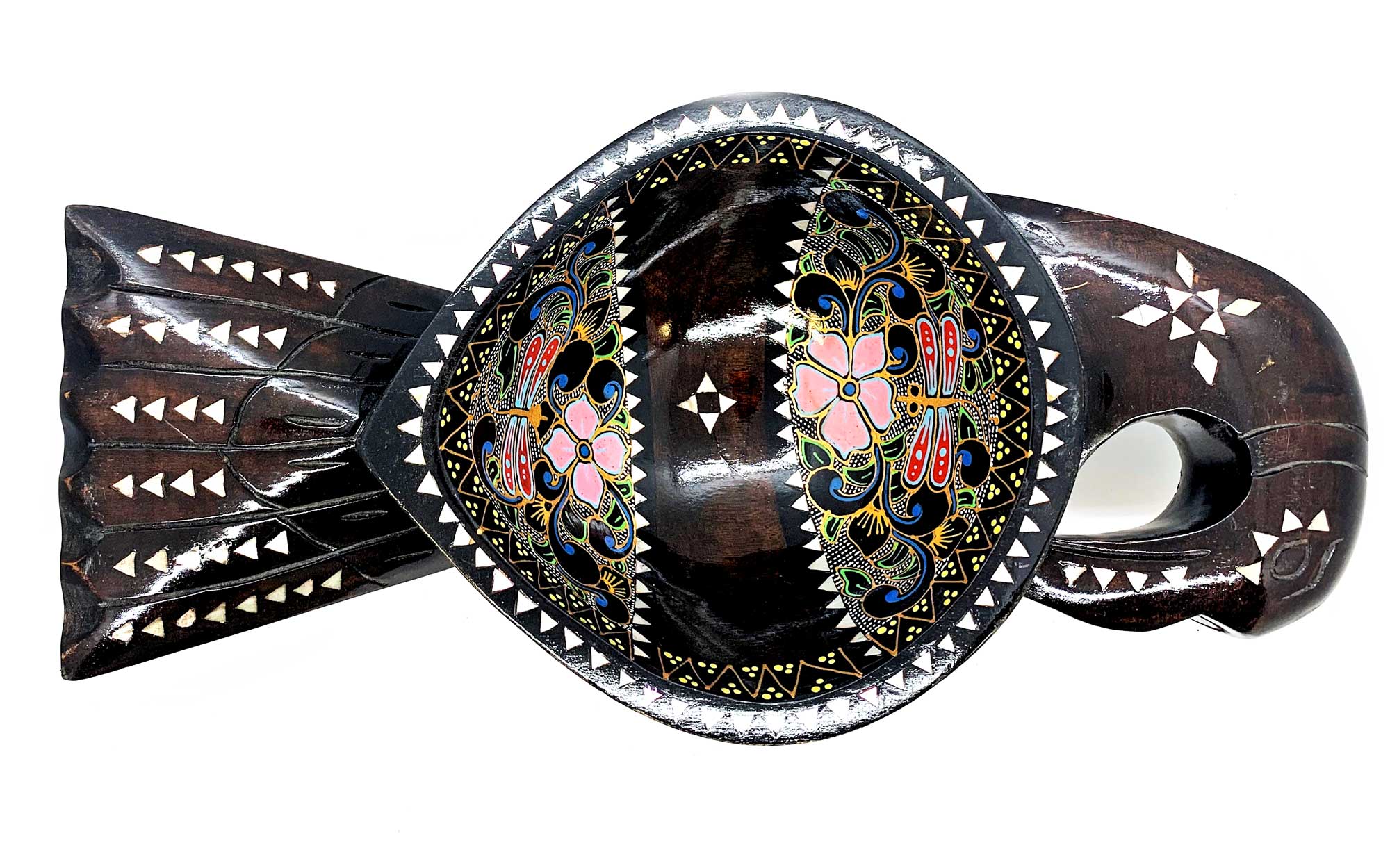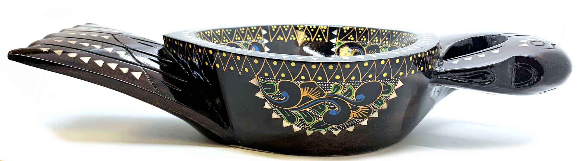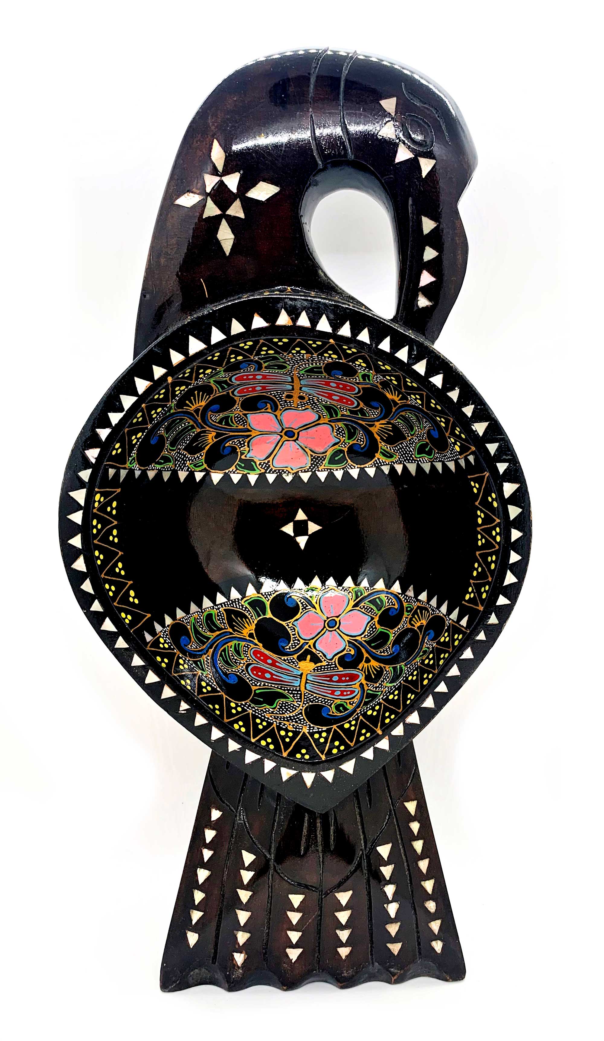 Братина Птица из цельного дерева инкрустированная перламутром (34х16,5х6 см)C