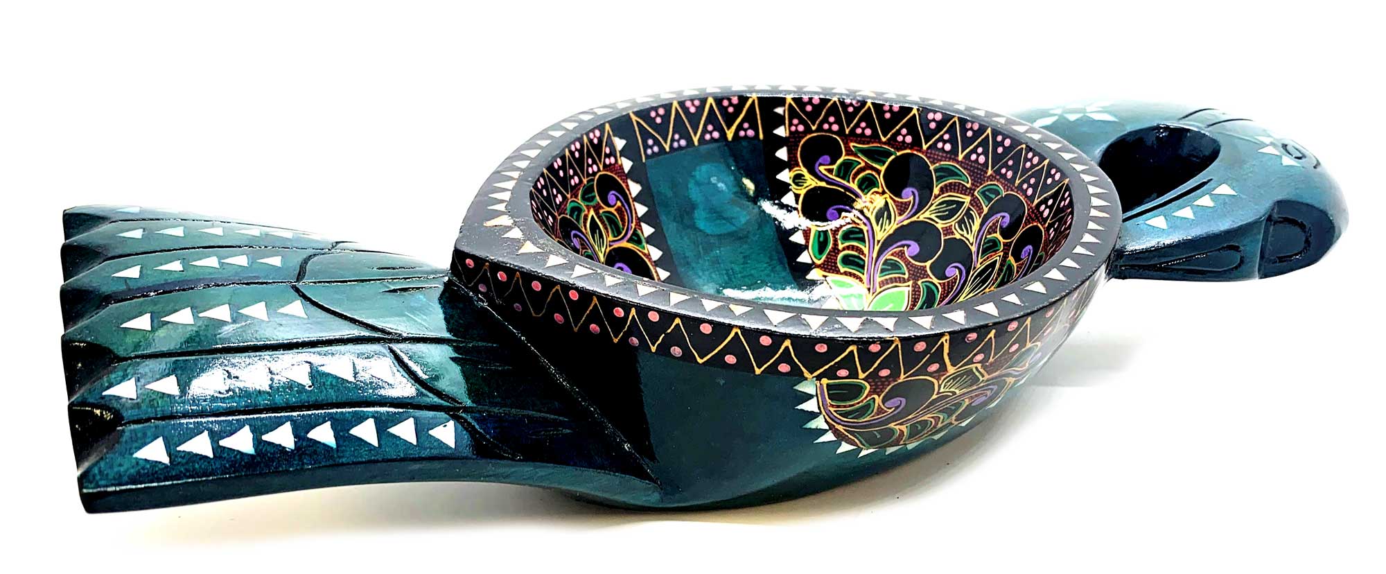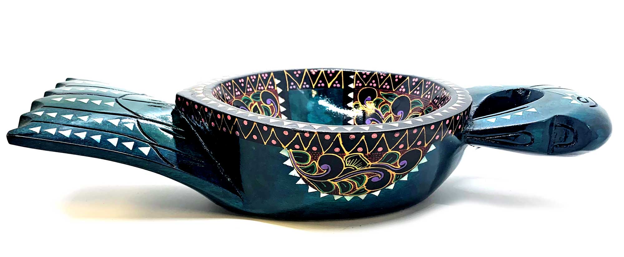 Братина Птица из цельного дерева инкрустированная перламутром (34х16,5х6 см)E