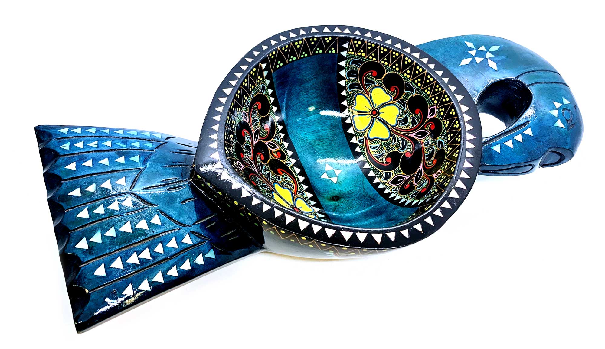 Братина Птица из цельного дерева инкрустированная перламутром (34х16,5х6 см)G