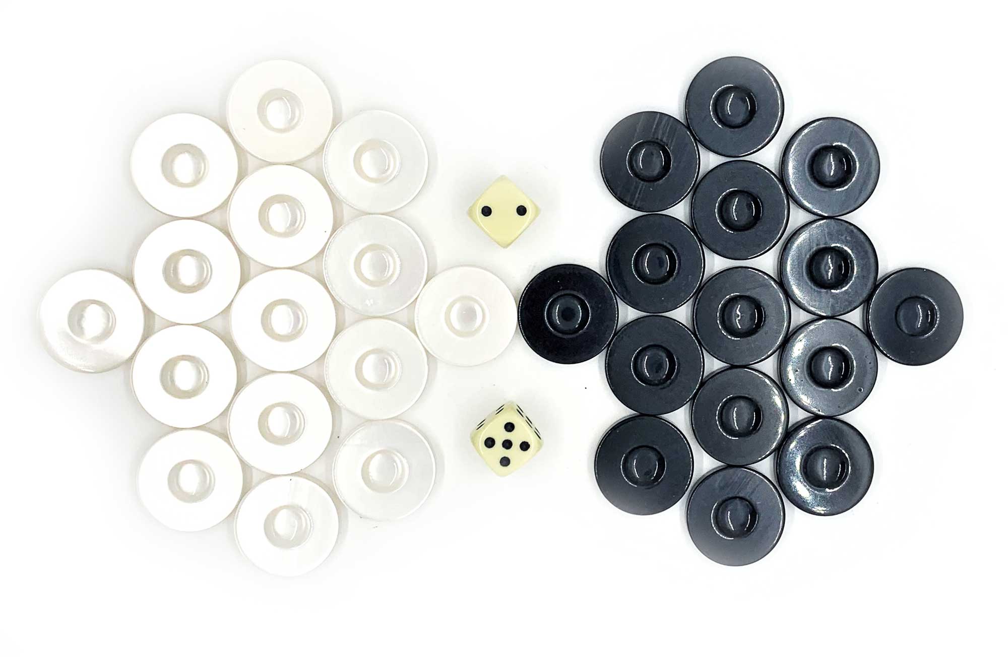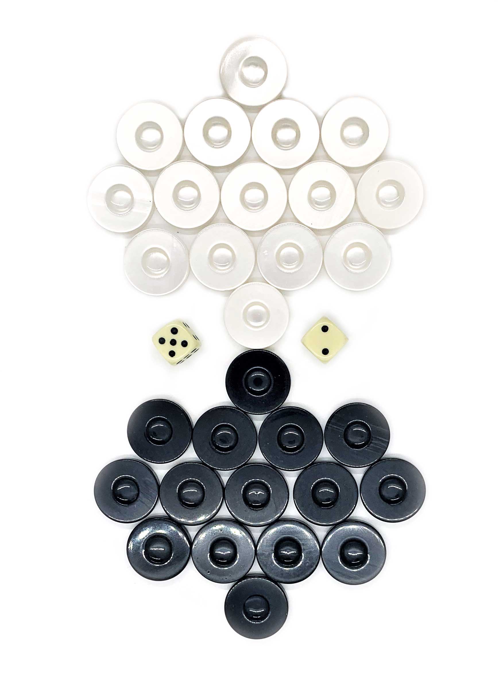 Фишки для нард перламутровые (d-3,6 см) с игральными кубиками в мешочке