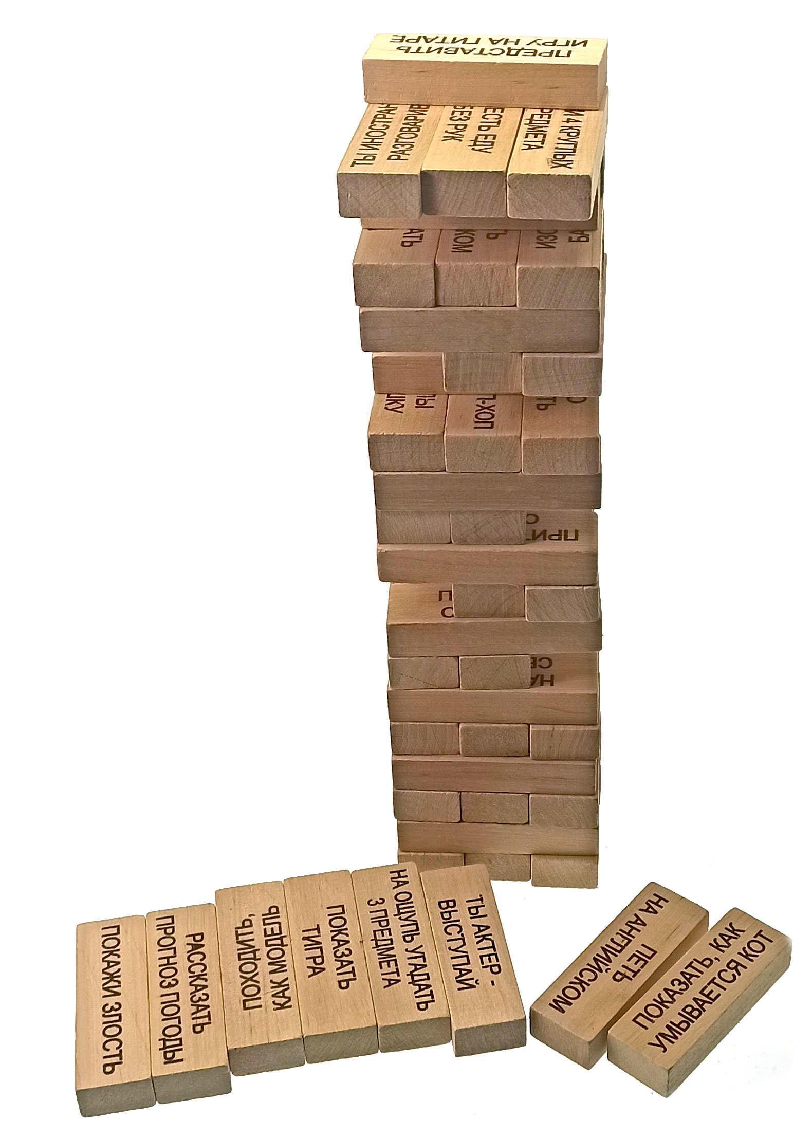 Игра настольная Дженга с фантами, надписи на русском языке (60 брусков)(28,5х7х7 см) массив дерева