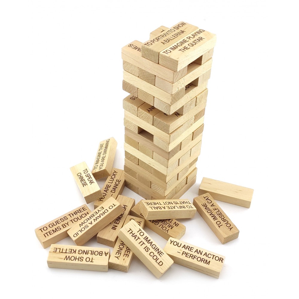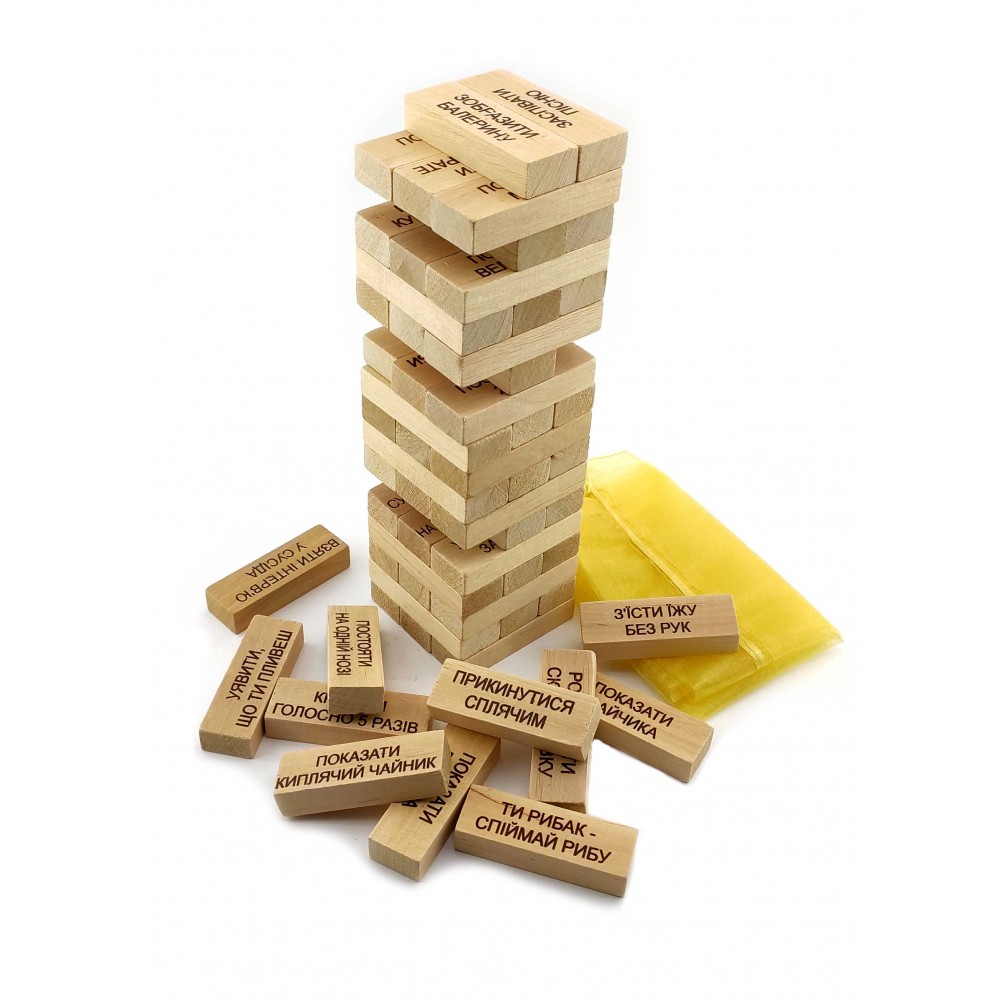 Игра настольная Дженга с фантамис мешочком, надписи на английском языке (60 брусков)(28,5*7*7см)