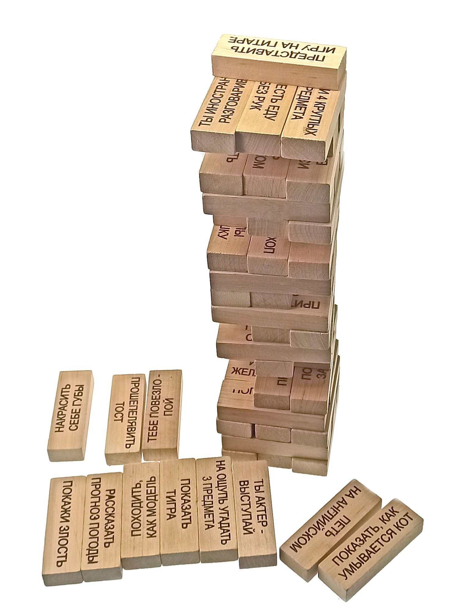 Игра настольная Дженга с фантамис мешочком, надписи на русском языке (60 брусков)(28,5х7х7 см)