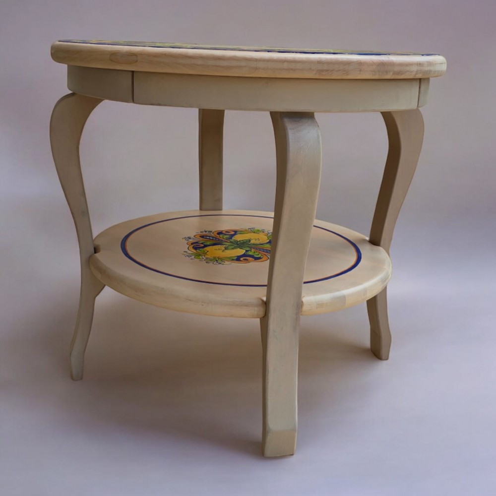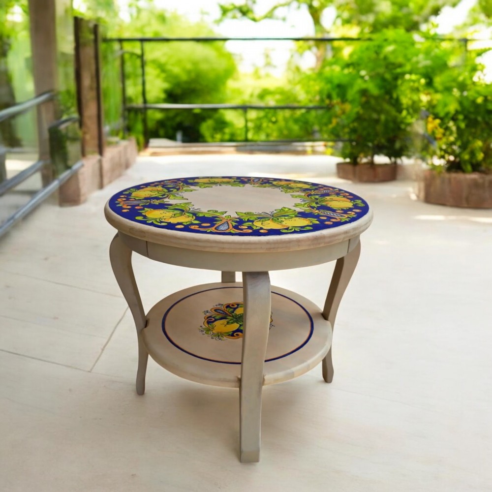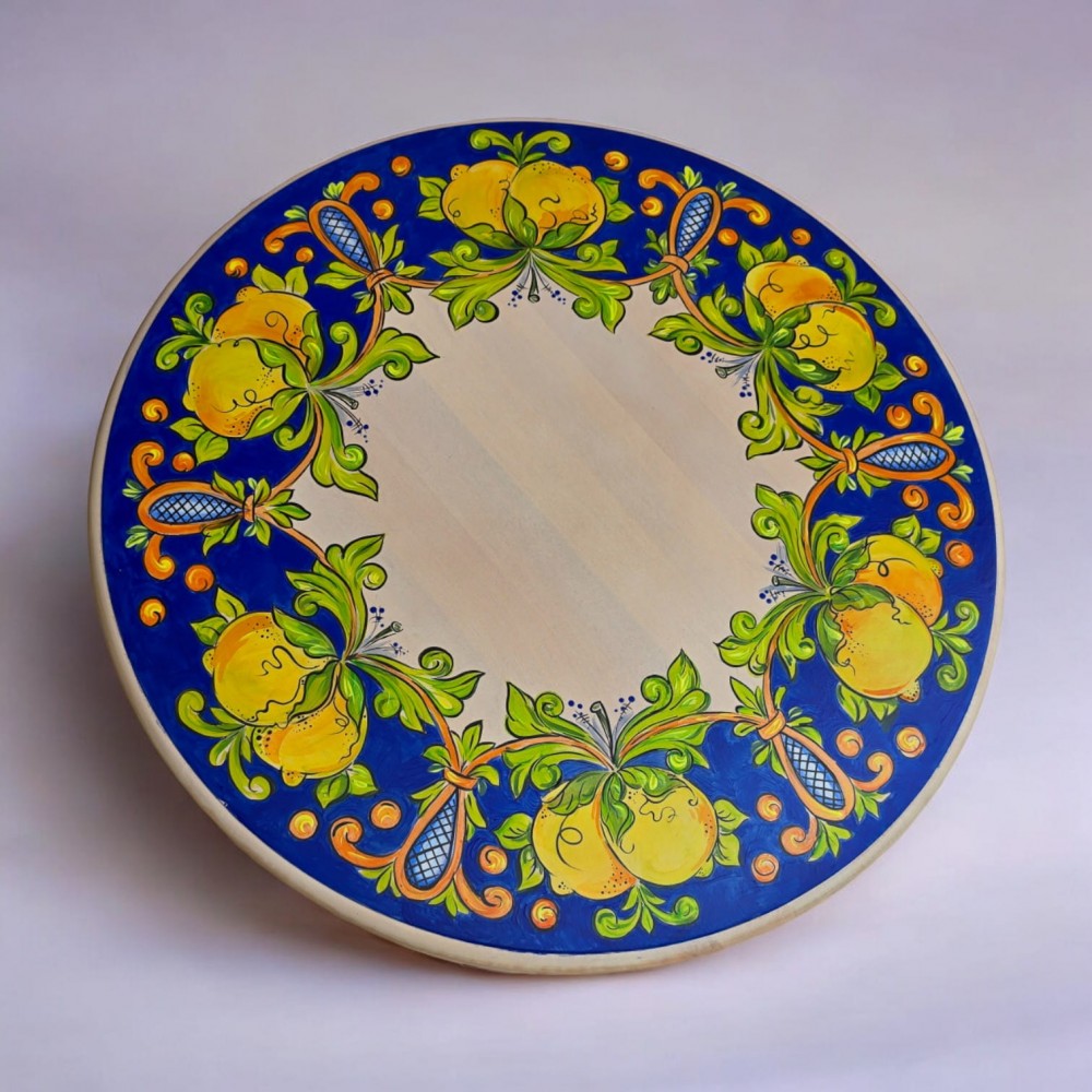 Стол украшен традиционными итальянскими орнаментами, которые придают ему уникальность и выразительность. Яркие лимоны и нежные листья на синем фоне создают ощущение свежести и лёгкости, перенесут вас в солнечную Италию.