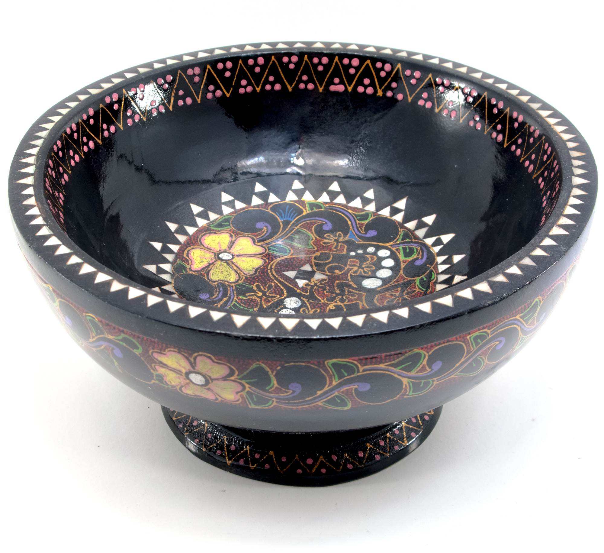 Конфетница расписная из цельного дерева инкрустированная перламутром (d-20,5 h-11 см)