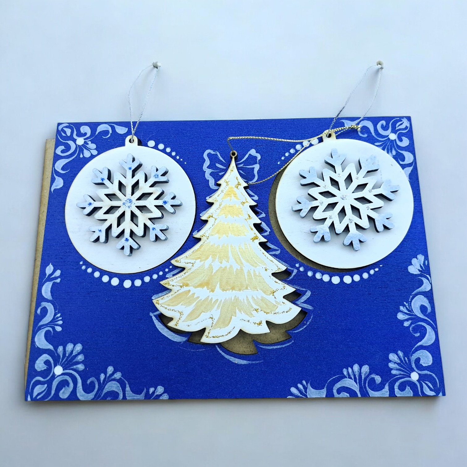 Представляем вашему вниманию уникальное крафтовое изделие, созданное талантливыми мастерами из Харькова. Это не просто открытка, а настоящее произведение искусства, которое станет замечательным украшением и подарком на Новый год.