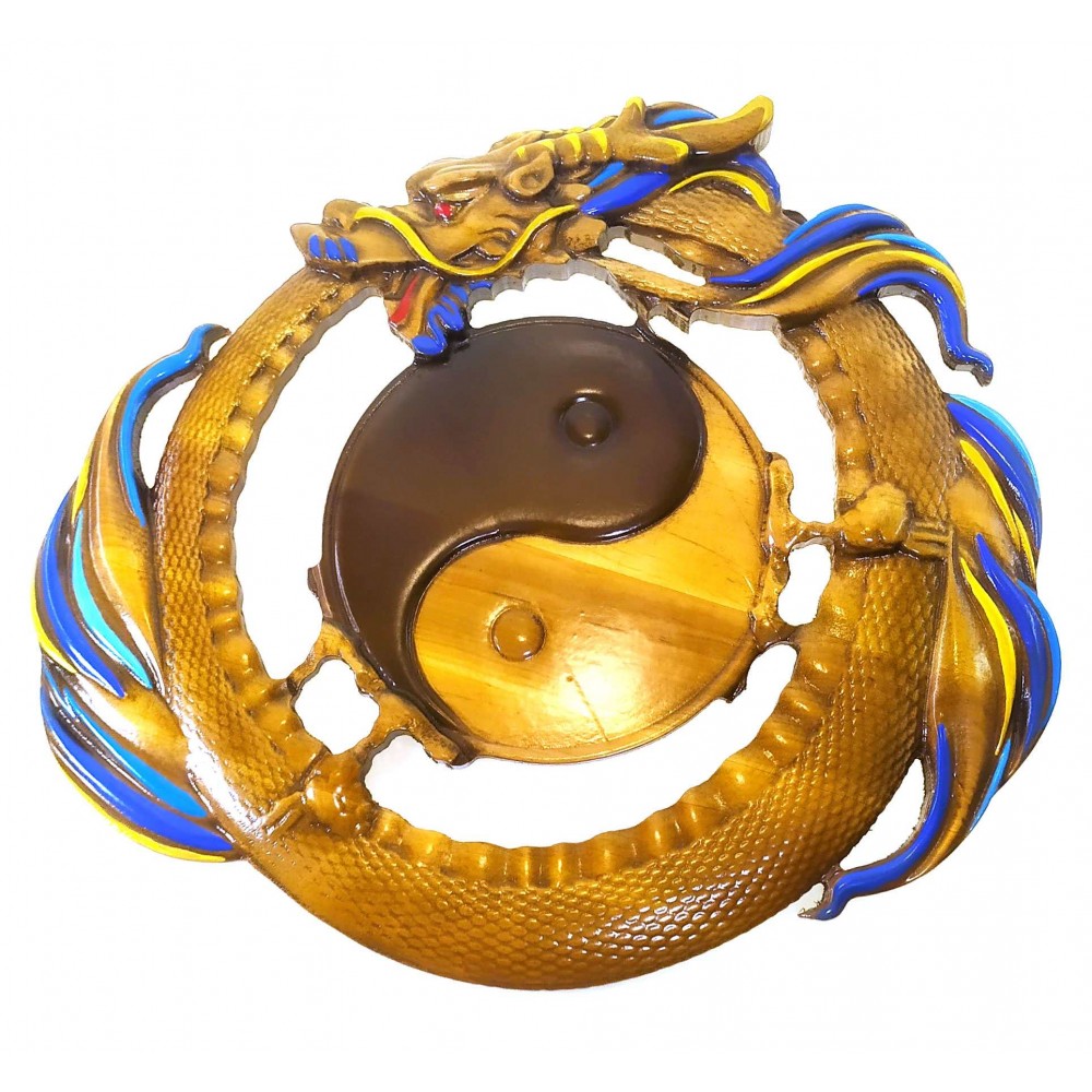 Панно Дракон с Инь-Янь ,резное,(31х26х2 см) массив дерева,покрыто патиной эмалями и лаком.