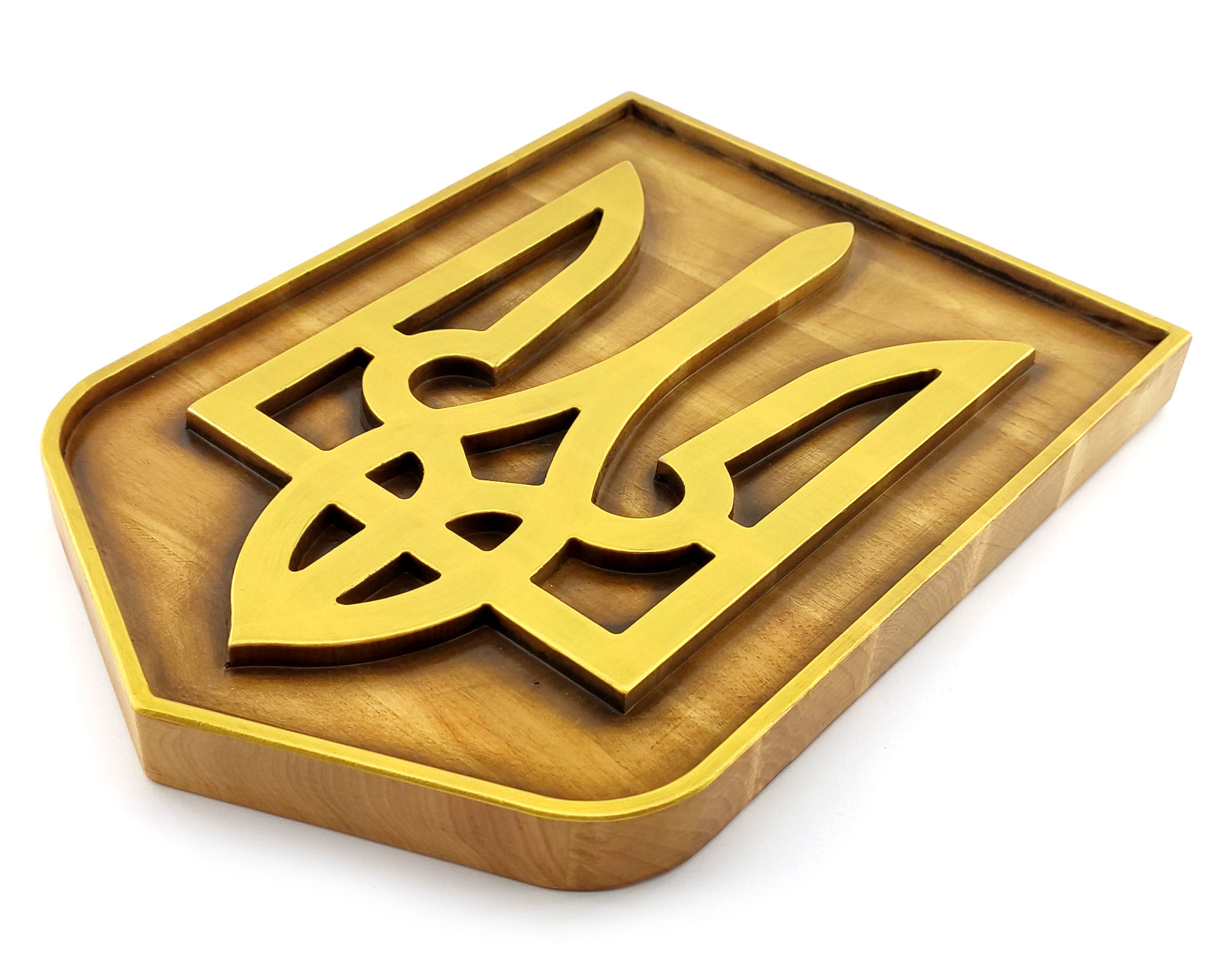 Панно Герб Украины(29*20,5*2,4см),из натурального дерева,резное,покрыто патиной,лаком,эмалью-золот