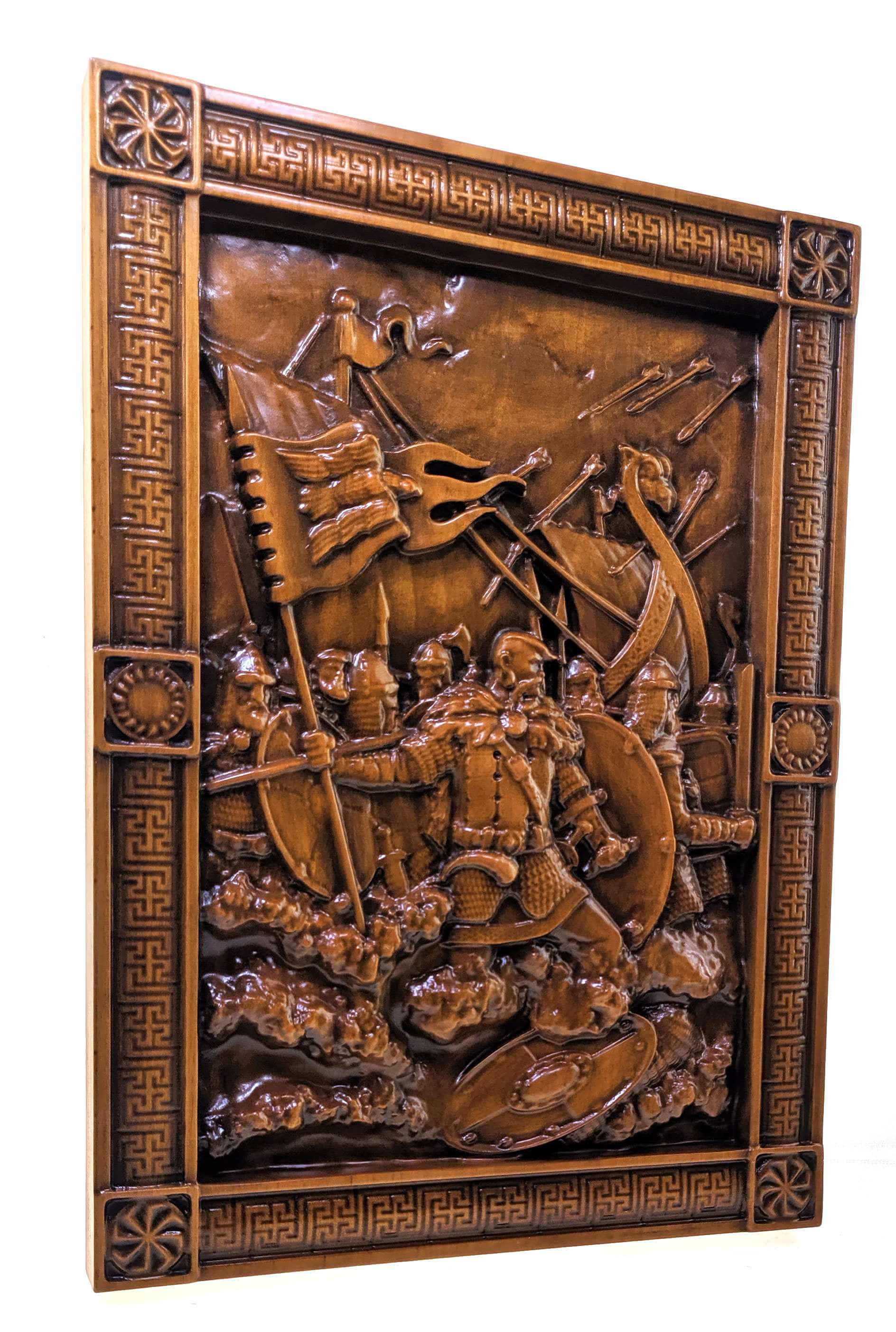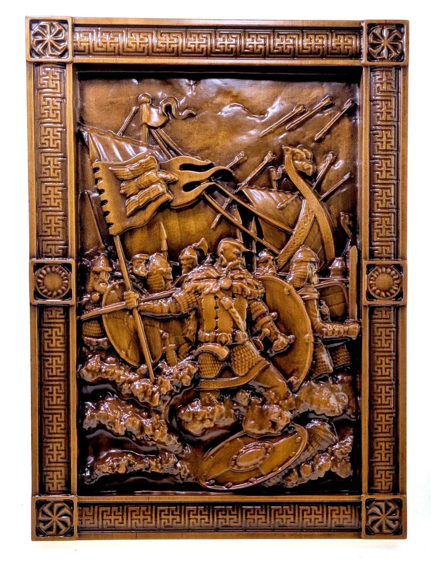 Панно Святослав,резное ,отделанное патиной и лаком (28,5х27,5х2,4 см) массив дерева.
