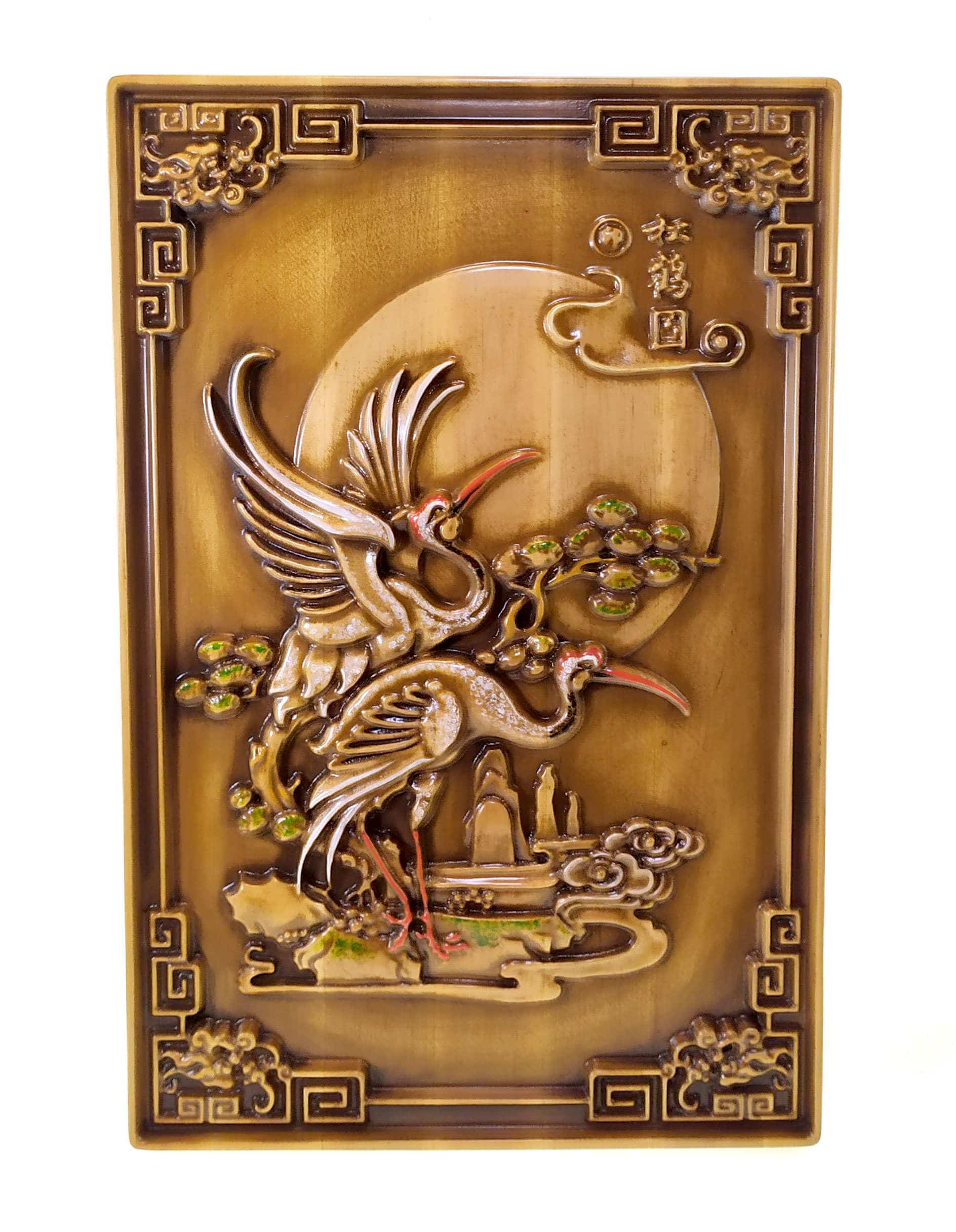 Панно Журавли резное, (43х28х2.2 см) массивдерева,покрыто патиной, эмалями и лаком.