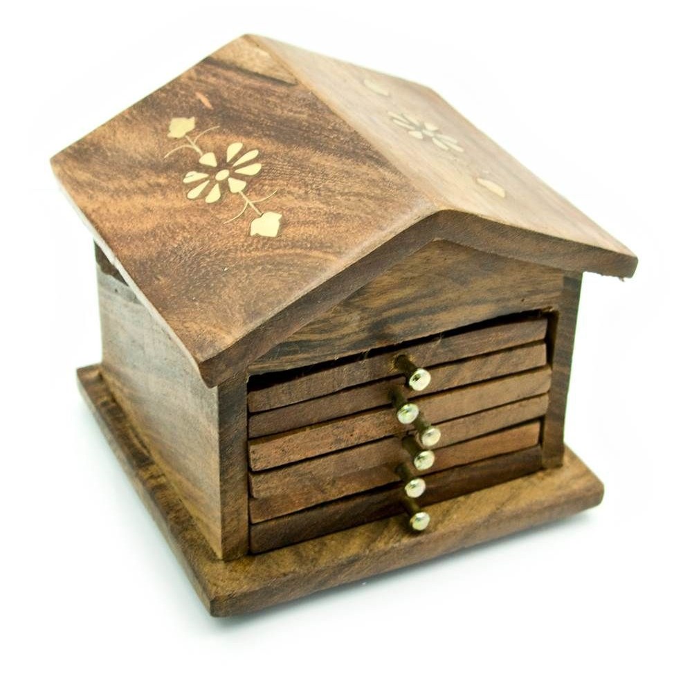 Подстаканники Домик (н-р 6 шт) розовое дерево (10х10х9 см) код 1772