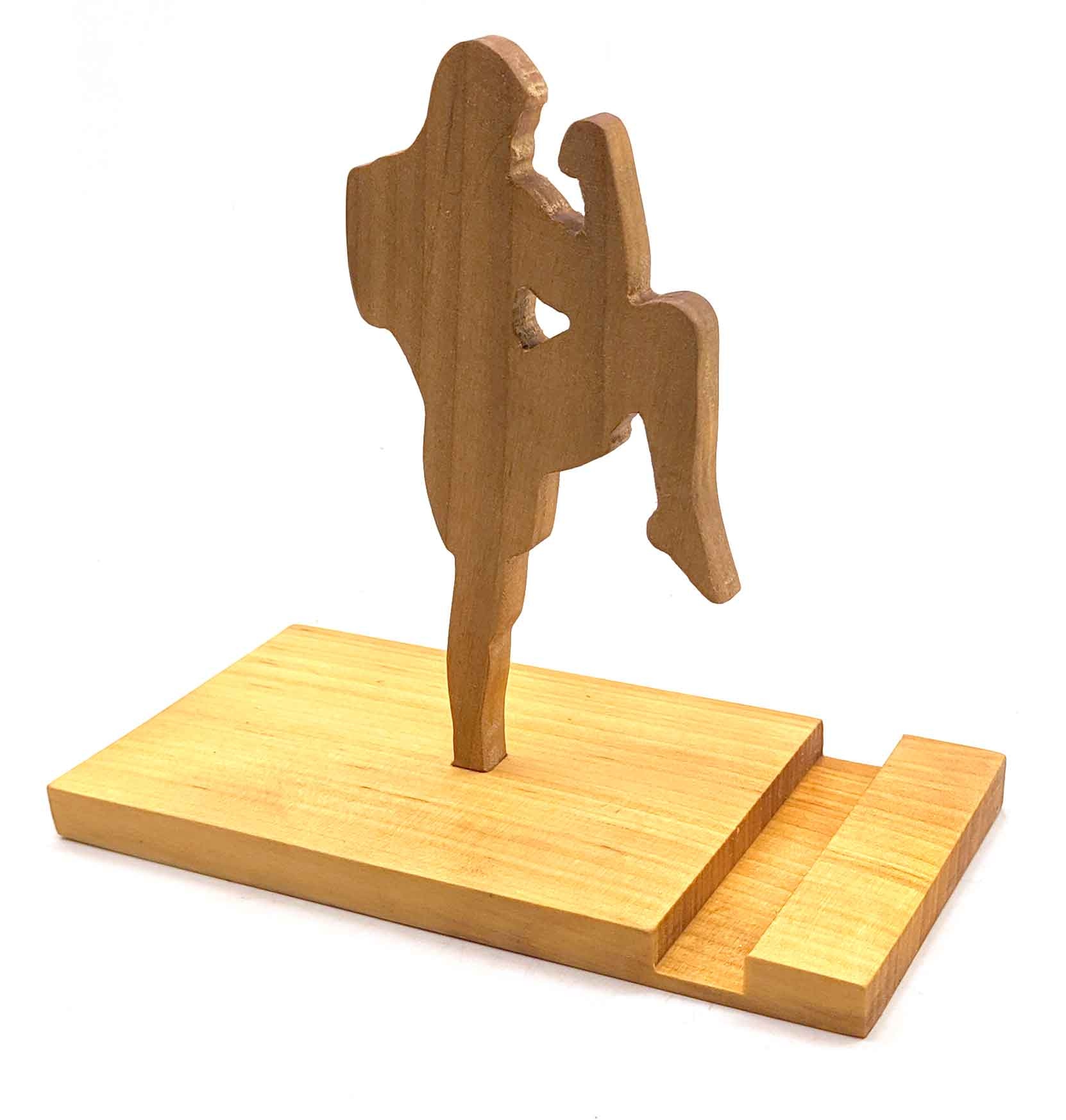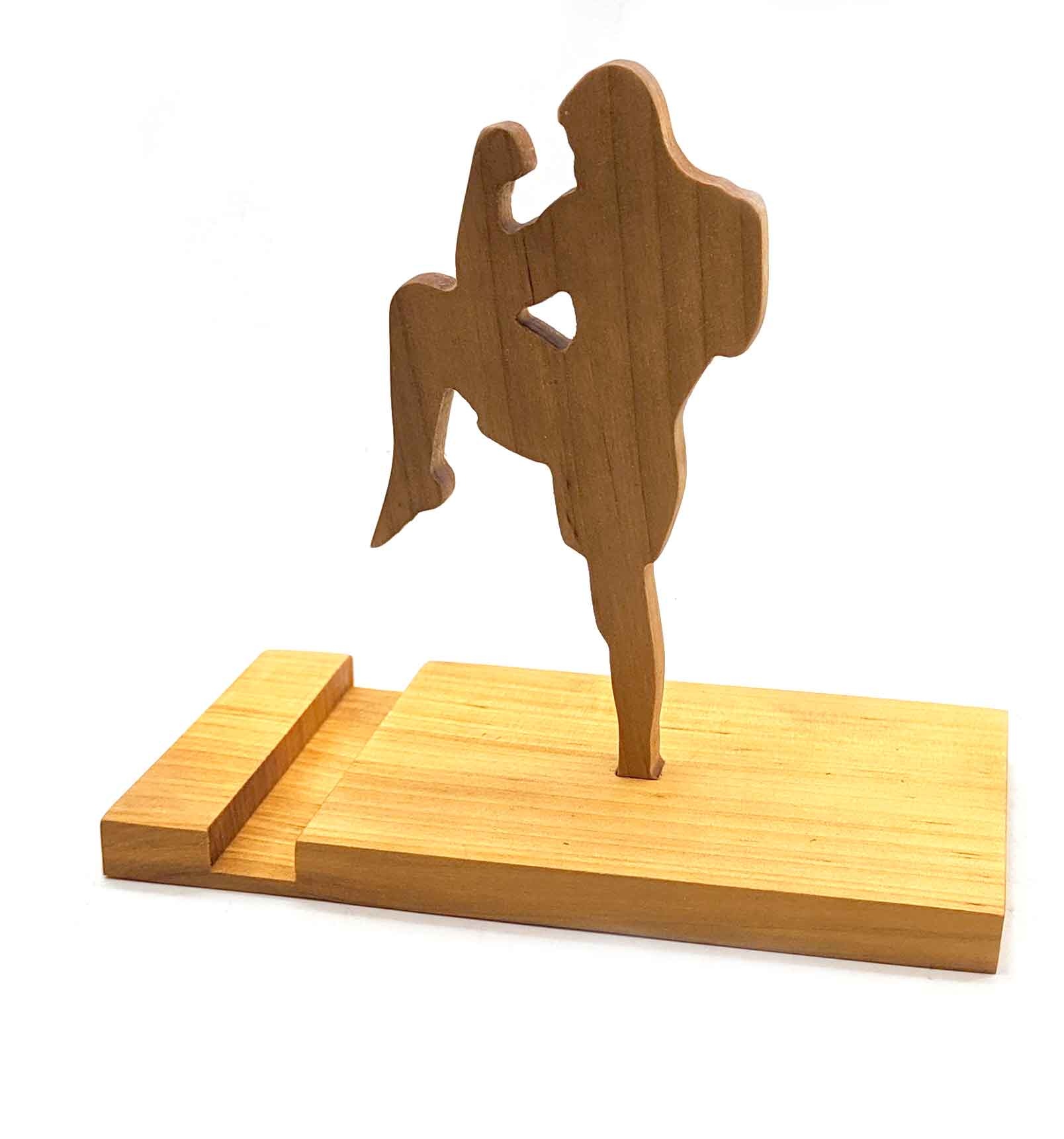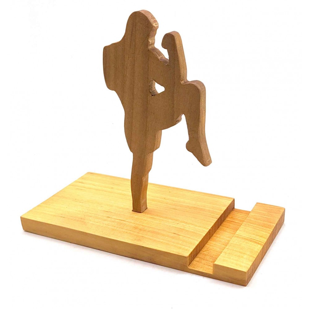 Подставка для телефона Муай Тай из ольхи покрыта льняным маслом и пчелиным воском(14х15х18 см)