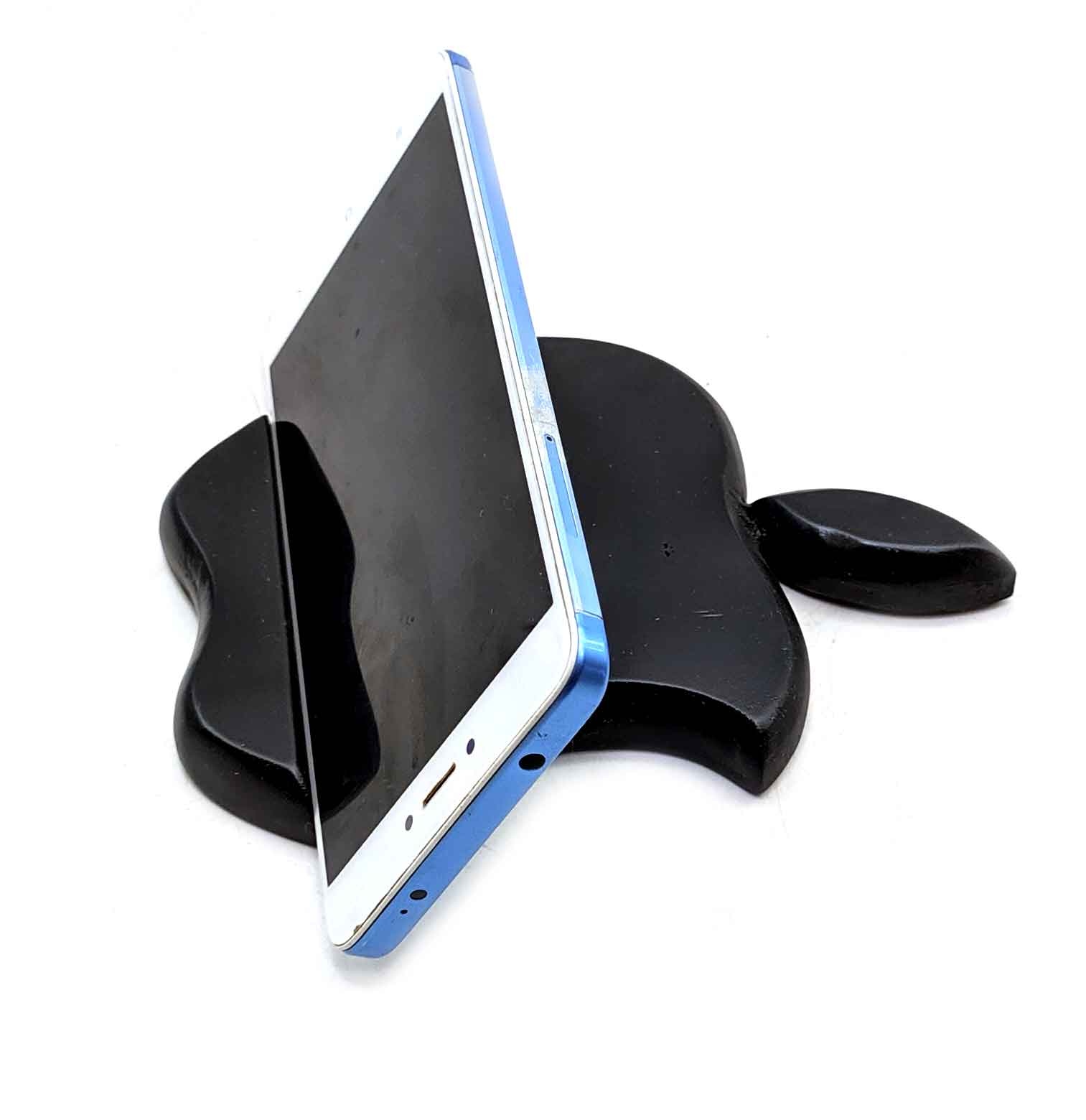 Подставка для телефона Яблоко черная деревянная(15х11х1,5 см) массив дерева