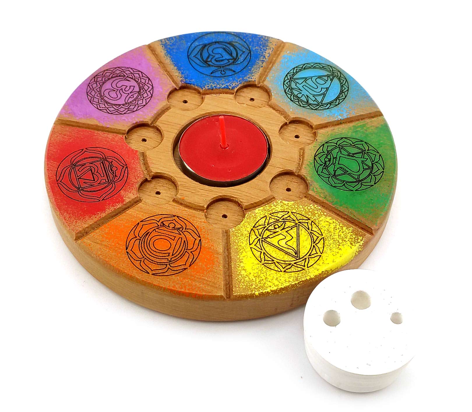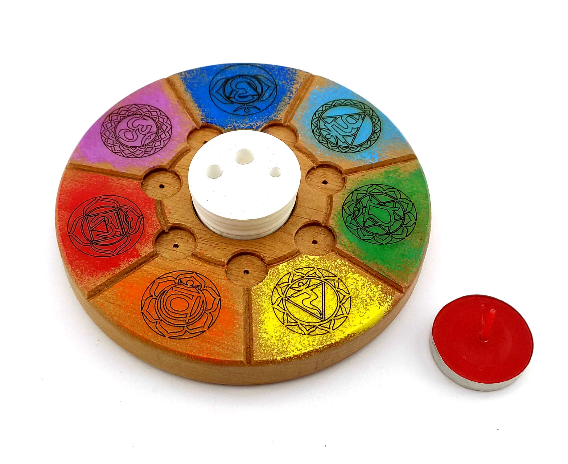 Подставка под благовония 7 чакр,(d14смh1,8см) дерево ,резная покрыта эмалью и лаком,массив дерева