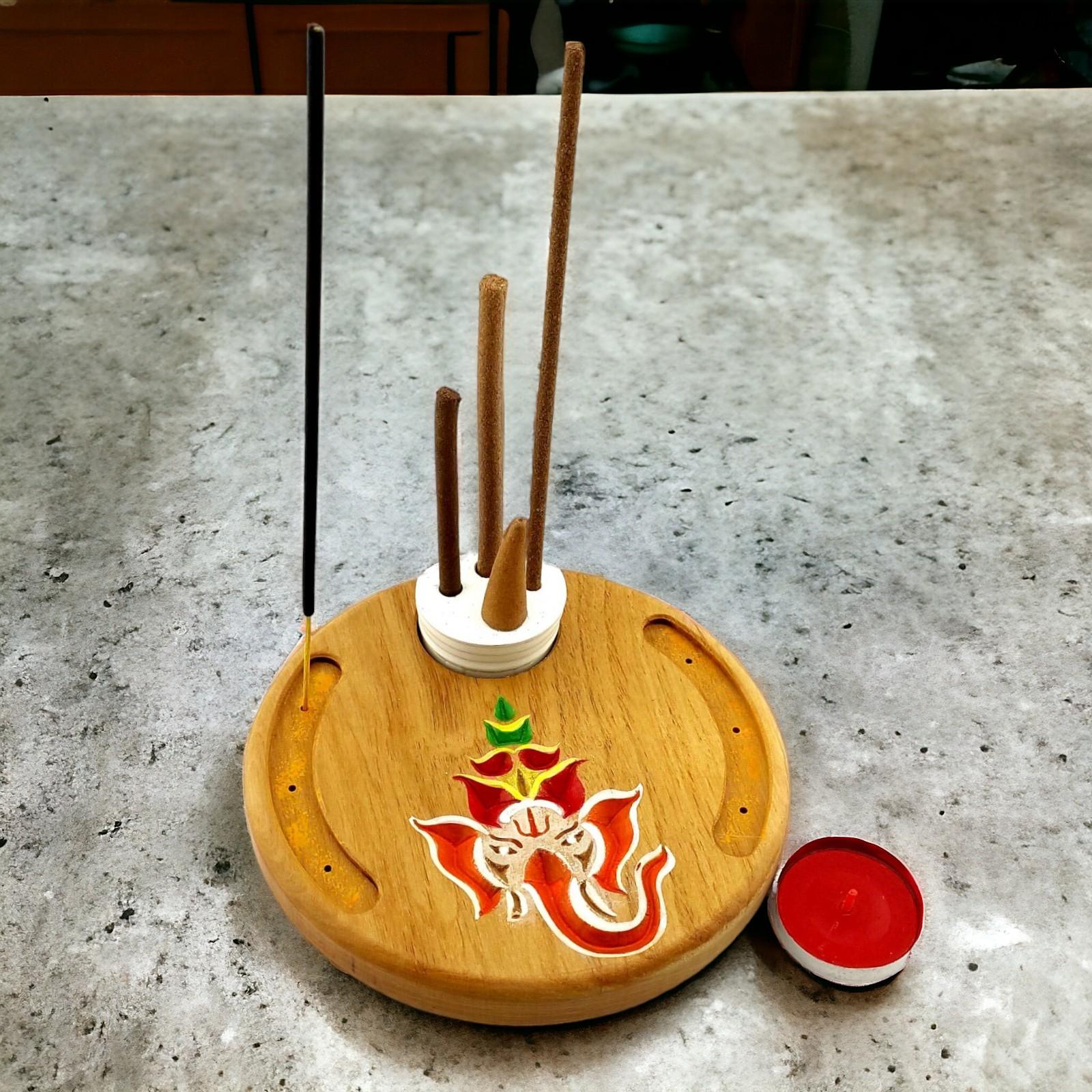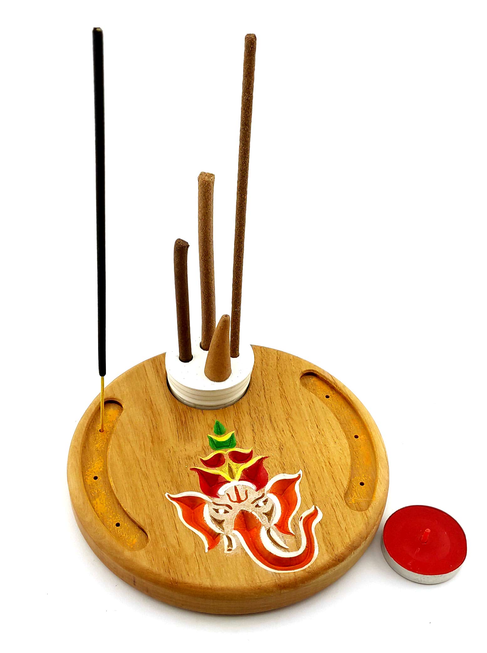 Подставка под благовония Ганеша,(d14смh1,8см) массив дерева,резная покрыта эмалью и лаком.