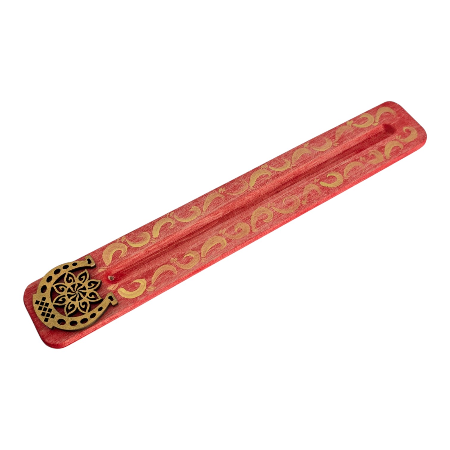Подставка под благовония Красная с солнечной подковой (26 х 4 х 0,7 см), расписано вручную