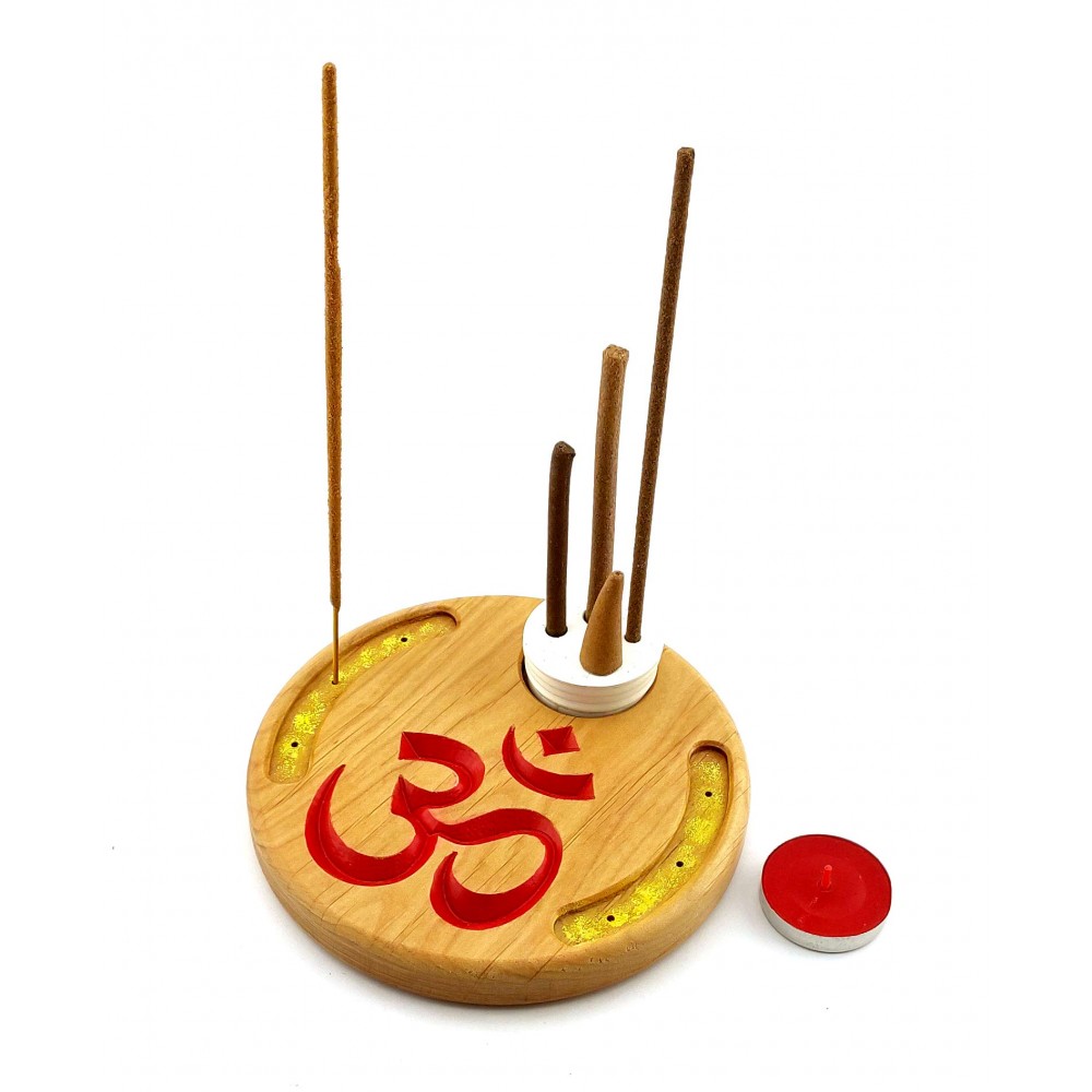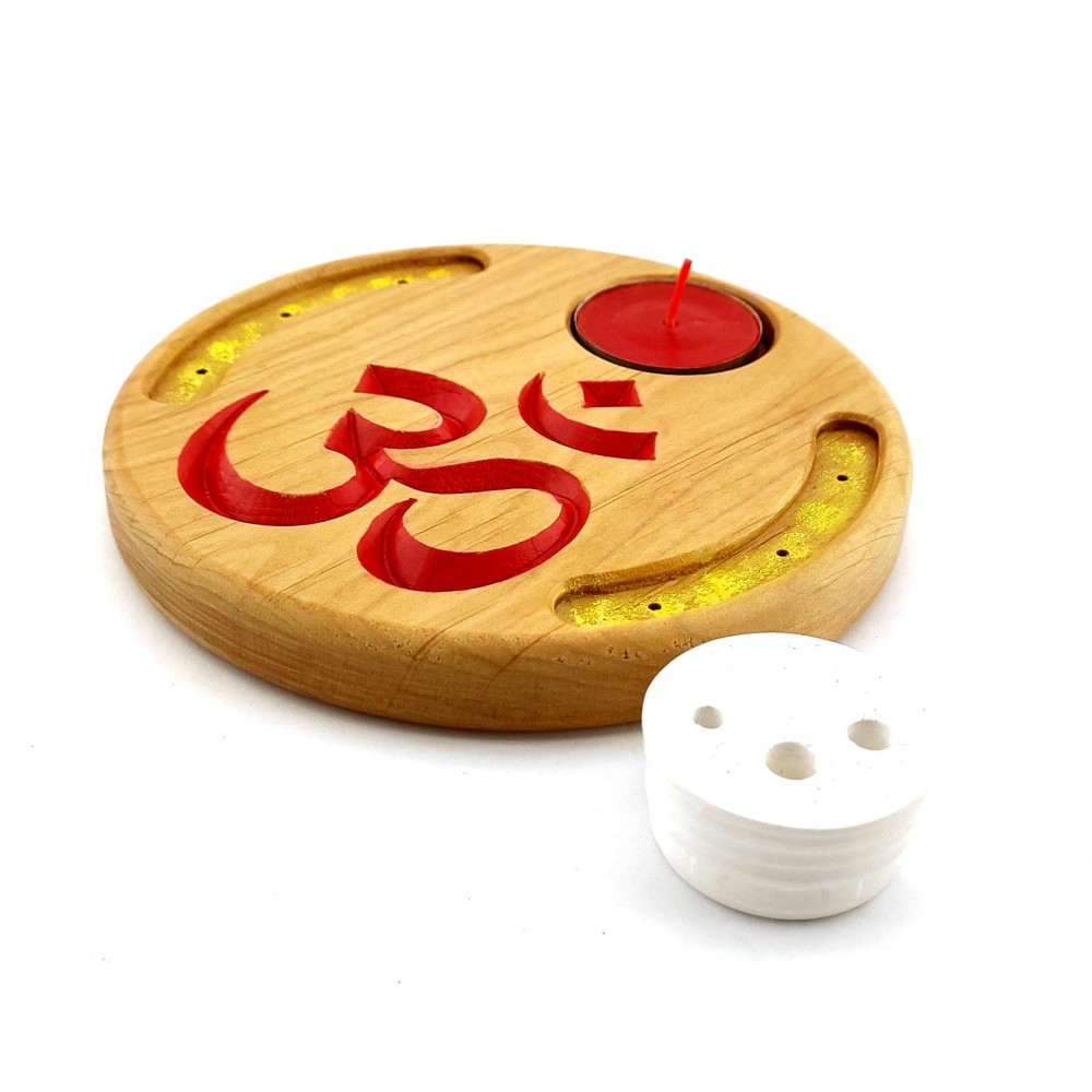 Подставка под благовония Ом (d14смh1,8см) массив дерева ,резная покрыта эмалью и лаком.