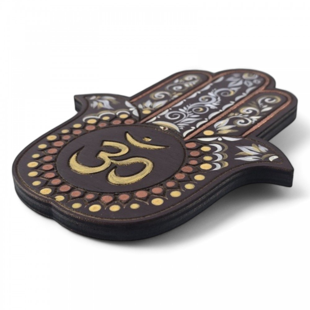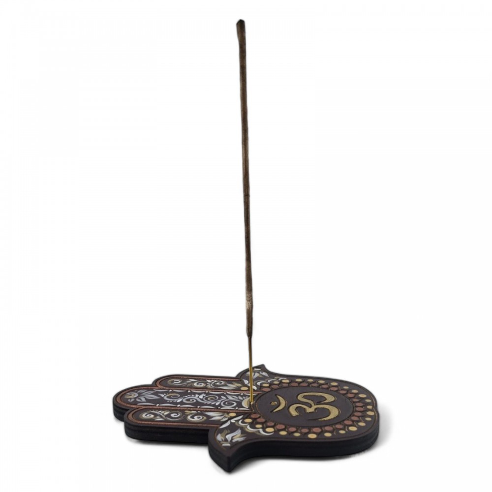 Эта подставка не только воплощает в себе красоту и символизм, но и является практичным и функциональным предметом вашего интерьера. Позвольте себе наслаждаться моментами гармонии и покоя в окружении этой великолепной подставки под благовония "ОМ" Хамса.