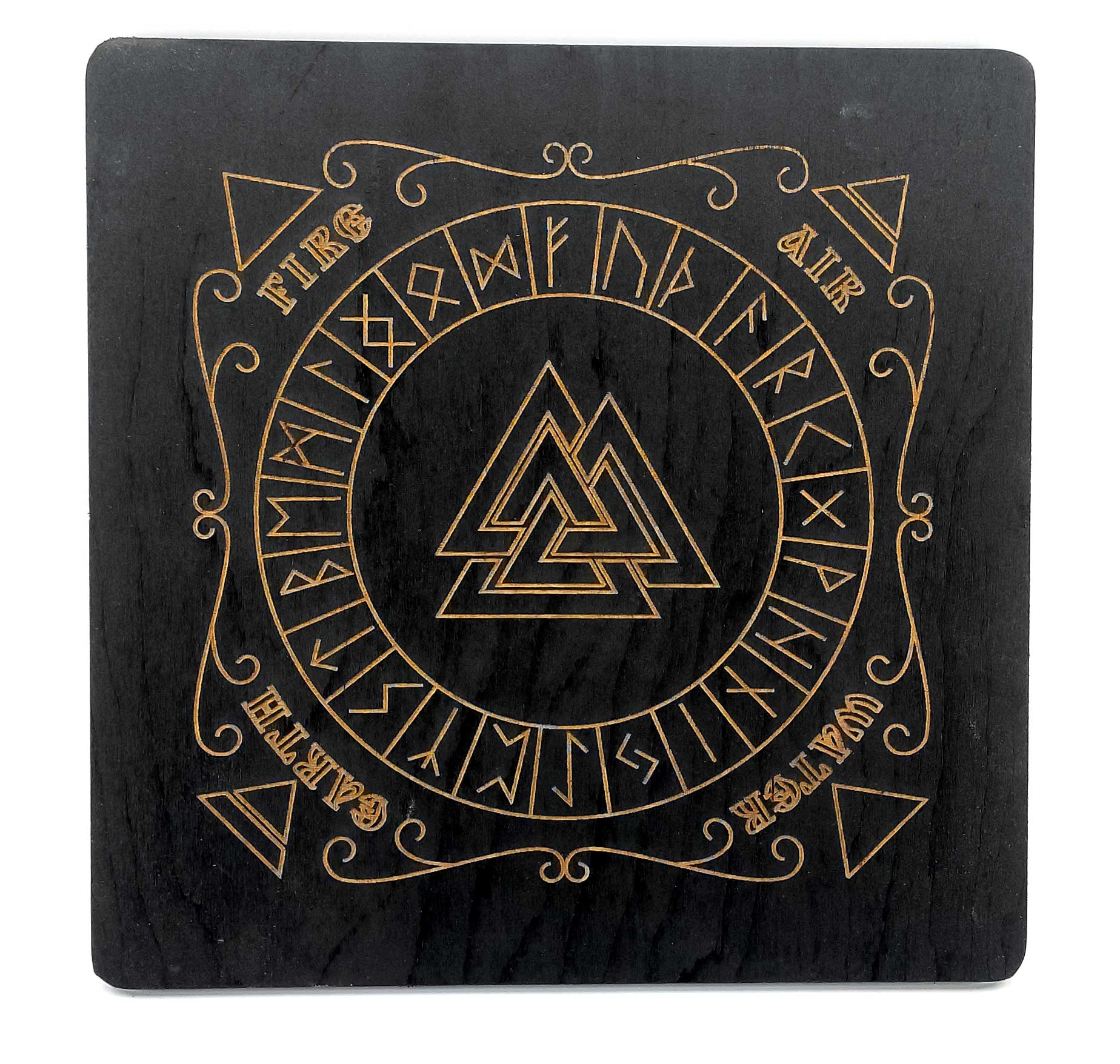 Рунический алтарь из дерева на английском языке, темный (26х26х0,8 см), покрыт эмалью.